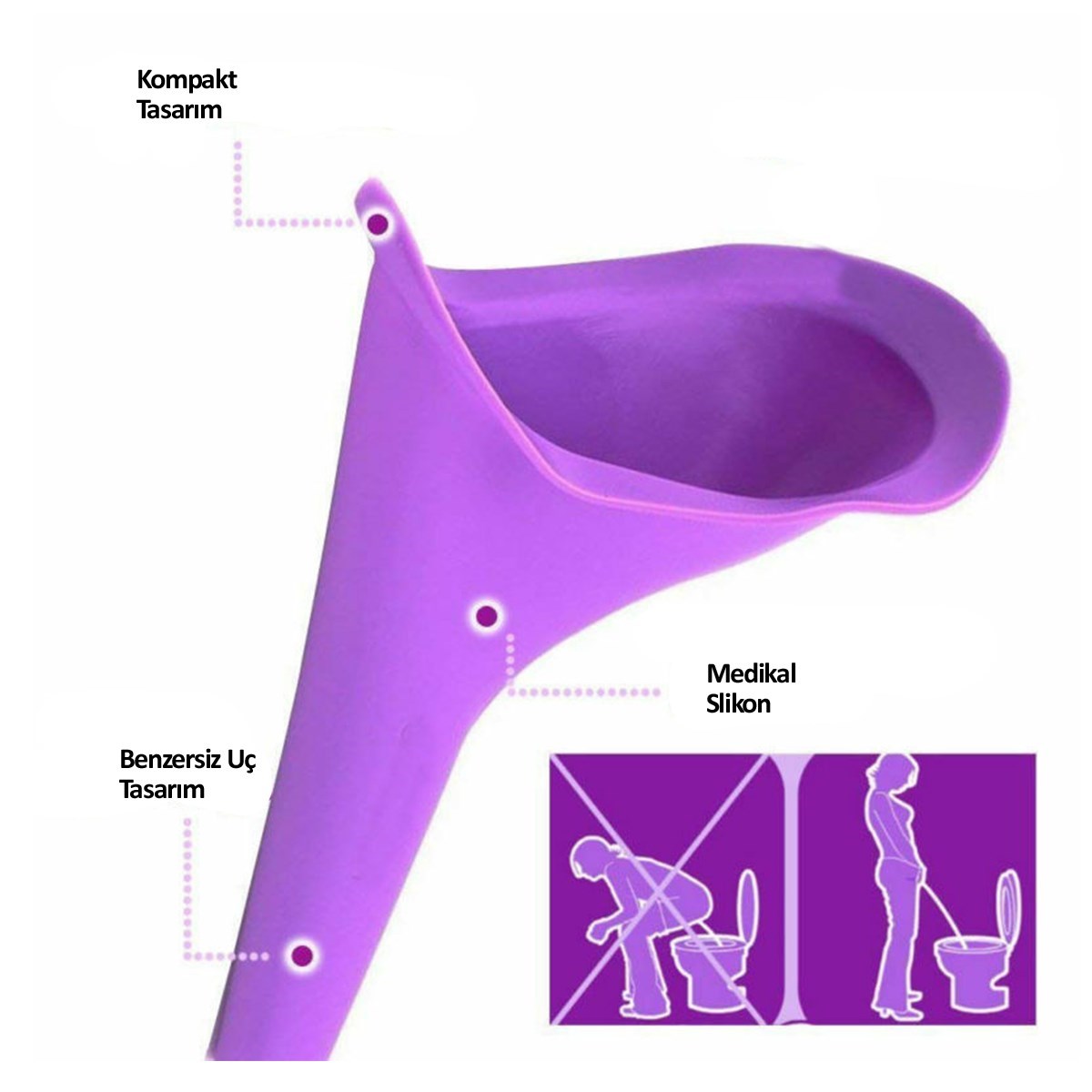 Piez Hijyenik tuvalet aparatı, kadınlara tuvalet ihtiyaçlarını ayakta giderebilme rahatlığı verir Kaliteli silikondan üretilmiştir ve tuvaletlerin iğrenç olduğu veya hiç tuvalet olmadığı durumlarda kadınlara hijyenik bir seçenek sunar Her türlü yaşam tarzına uygundur
