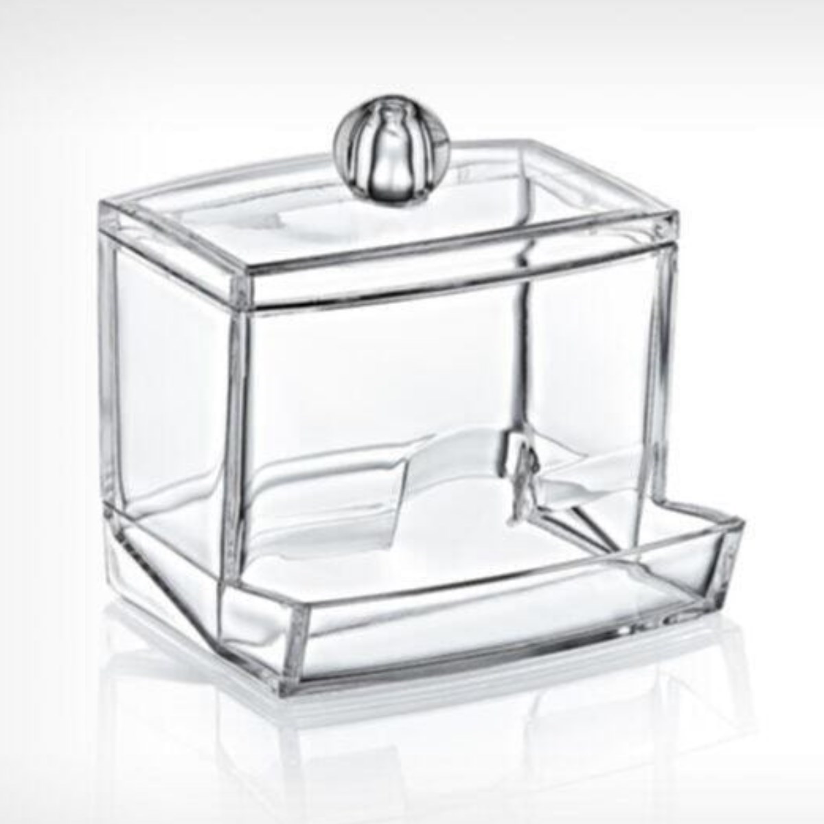 -Şeffaf üstten kapaklı şık tasarım, Altta kulak temizleme çubuklarının alınma bölmesi vardır