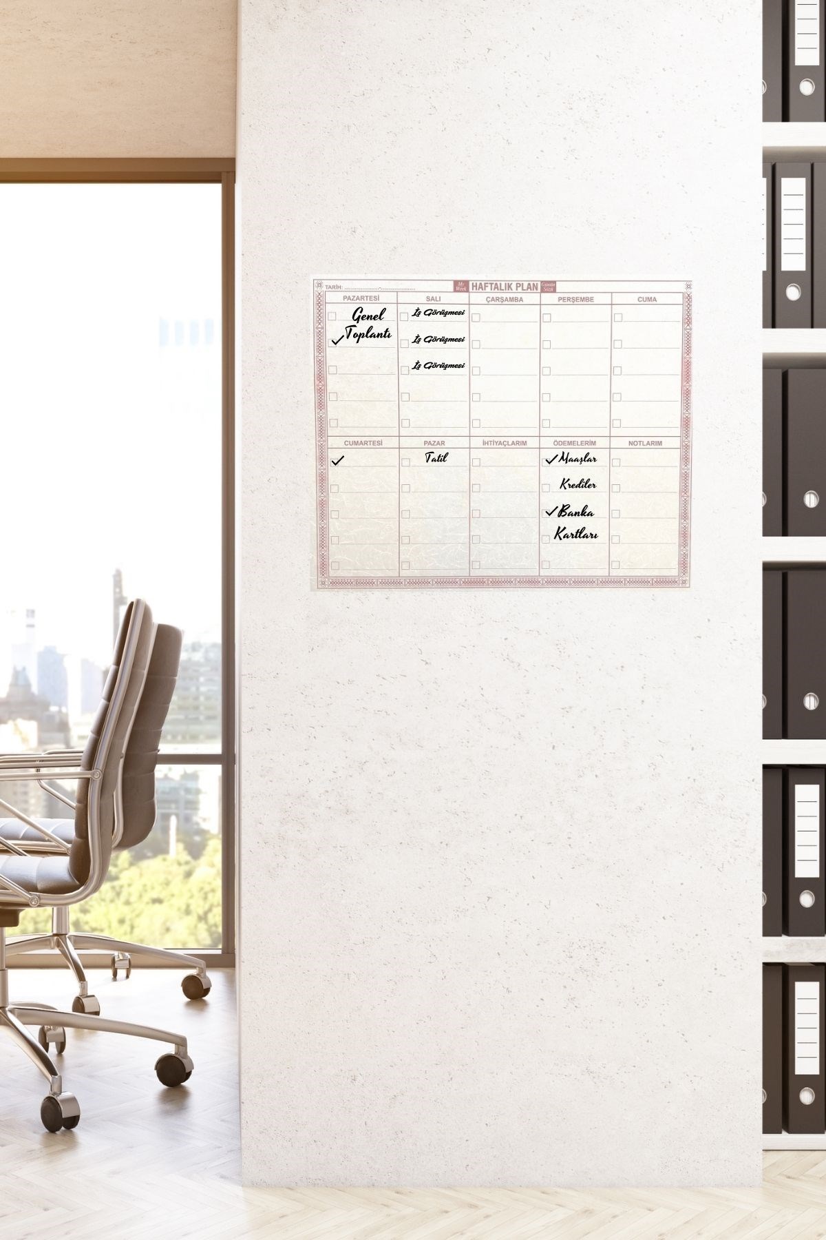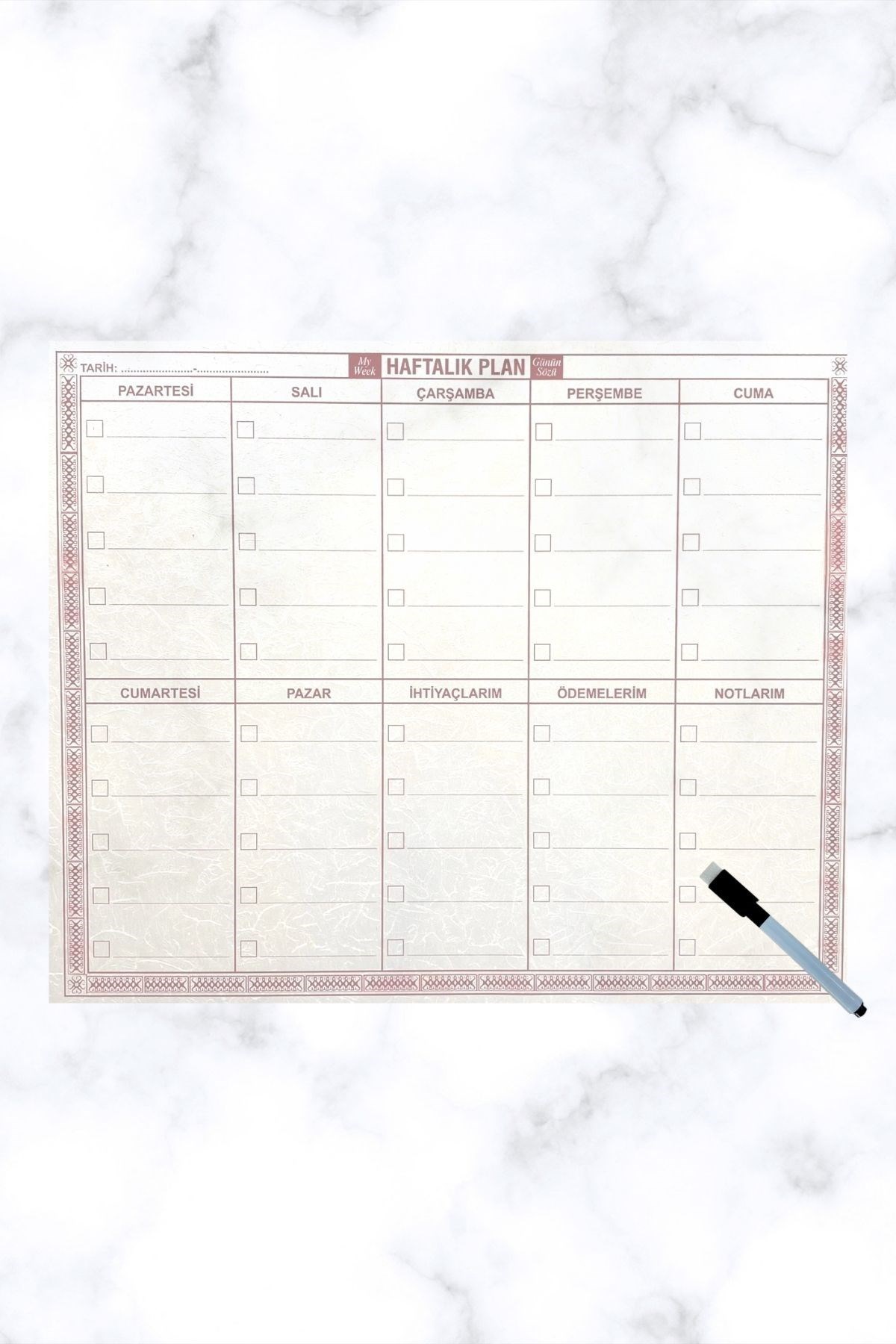 Biyomak® Şeffaf Kendiliğinden Yapışkanlı Kalemli Haftalık Planlayıcı 40cm-50cm