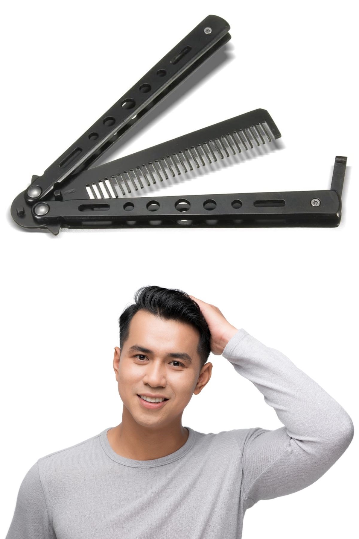 Biyomak® Siyah Katlanabilir Kelebek Bıçak Tarak ile stilinizi her an, her yerde koruyun!