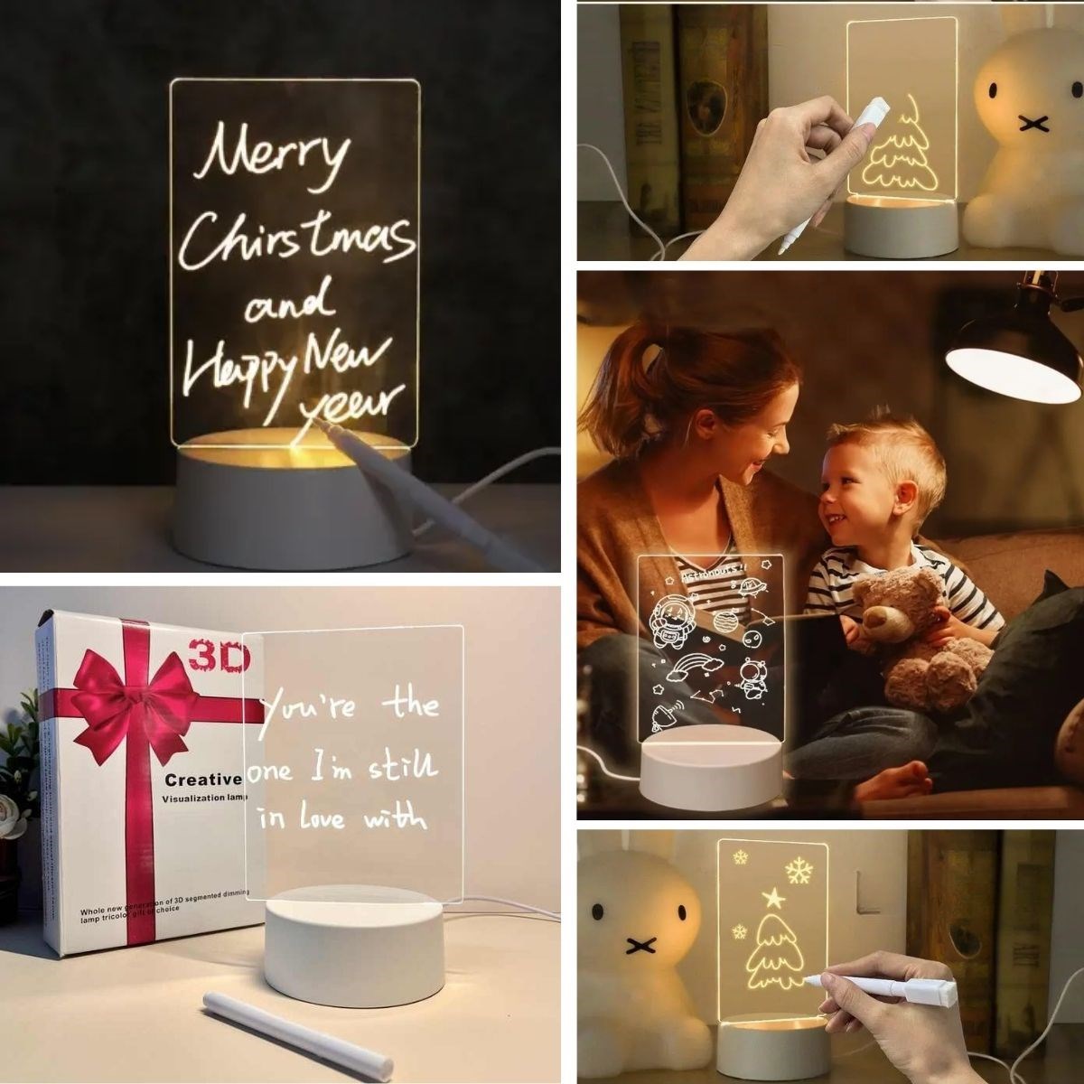 Biyomak® 3D Görselleştirme LED Lambası, yaratıcı çizimlerinizi ışığa dönüştüren özel tasarımıyla ev, ofis ve çocuk odaları için mükemmel bir dekoratif aydınlatma sunar. Kendiliğinden yazılabilir yüzeyi sayesinde set içinde bulunan beyaz kalemle dilediğiniz figürü kolayca çizebilir, silgili kalem yapısıyla anında silerek yeniden tasarlayabilirsiniz. Çizdiğiniz her şekil güçlü LED ışıklarla aydınlanır ve etkileyici bir 3D optik görünüme dönüşür.