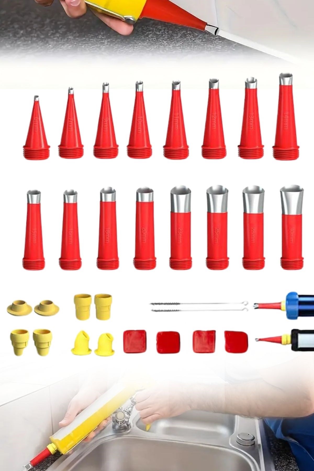 Tam Set: Set, silikon uygulamaları için gereken tüm aletleri içerir; kalafatlama işlemlerini kolay ve etkili bir şekilde gerçekleştirmenize yardımcı olur.