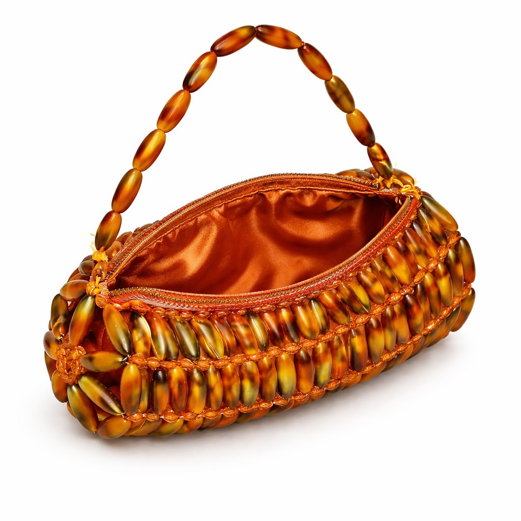 Atelier Emine’in Creamstone Couture serisine ait Calista Umber, doğal sedef (mother-of-pearl) modüllerin, yüksek dayanımlı şeffaf bağlantı elemanları ve monofilament sistemlerle tek tek birleştirilmesiyle üretilmiş; referans çanta kategorisinde konumlanan, yüksek işçilik yoğunluğuna sahip premium bir el çantası tasarımıdır.