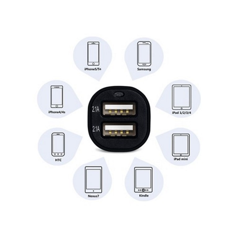 Çift USB Girişli 2.1 AMP Araç Şarj Aleti'ni aracınızın çakmak girişine takıp, çift USB girişi sayesinde aynı anda tablet ve telefonunuzu şarj edebilirsiniz.