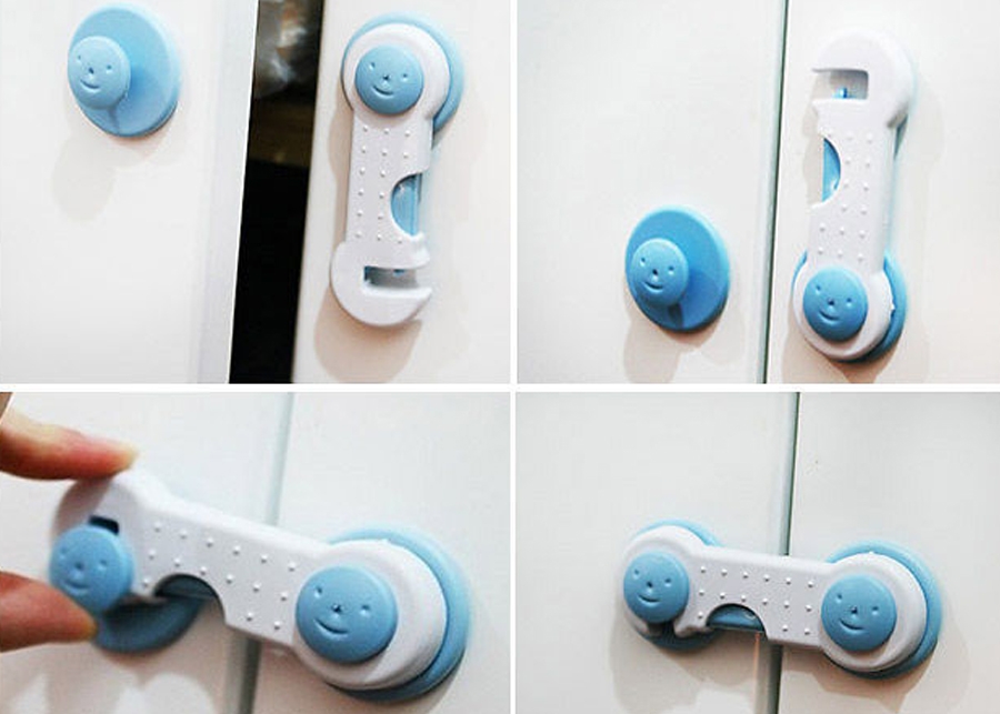 Geçmeli dolap kilidi, dolap kapaklarını açarken çocuklarınızın başına gelebilecek sakatlıkları önler.