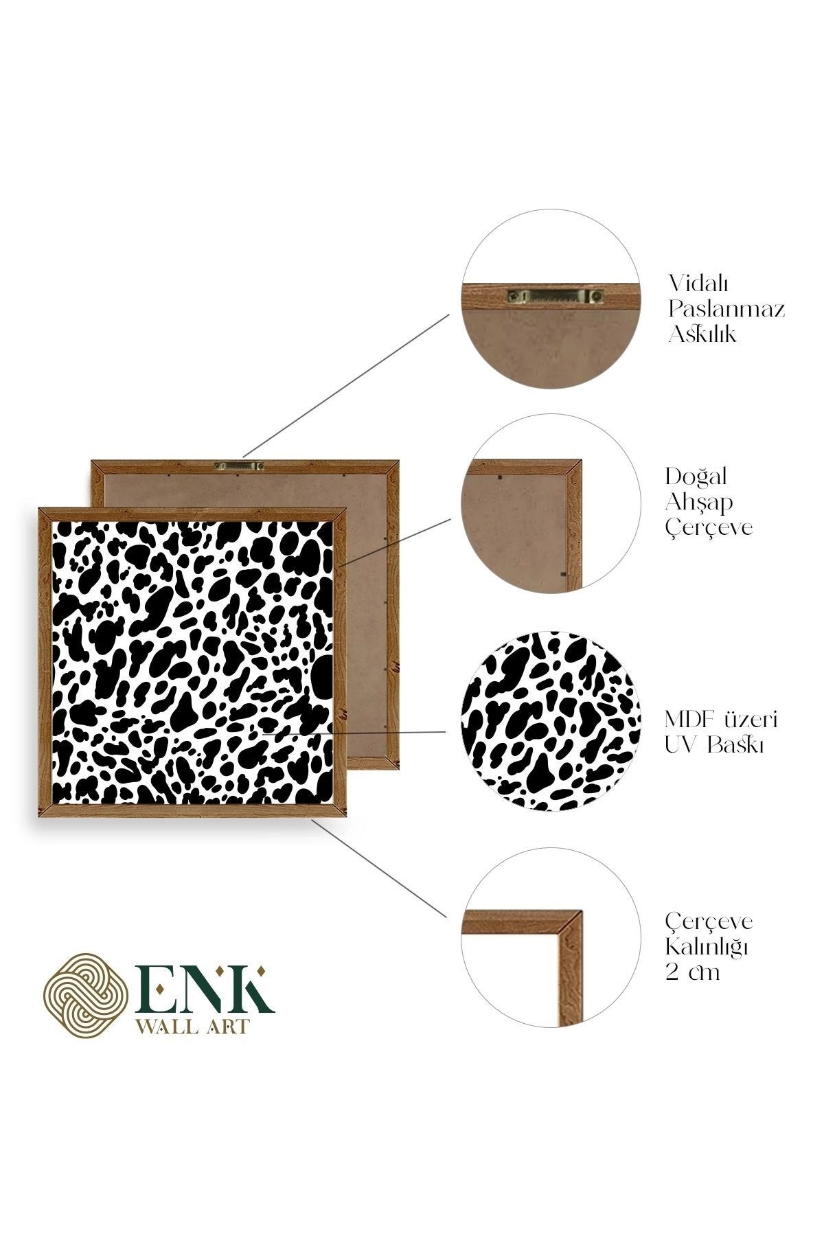 Tablolarımız gerçek ahşap çerçevelidir, çerçeve görünümlü değildir. ; ENK Wall Art Olarak Ahşap Çerçeveli Tablolar Üretiyoruz. ; Tablolarımız tek parça, 3 Parça, 5 Parça ve daha çok kategoride tasarımcılarımız tarafından ev ve ofisleriniz duvarları süslemek için tasarlanmaktadır. ; Ahşap Çerçeveli Duvar Tabloları ile yaşam alanlarınıza yepyeni bir görünüm kazandırın. ; Yıllarca dayanacağından emin olduğumuz sağlam çerçevelere sahip yüksek kaliteli ahşaptan üretilmiştir. ; İster bir köşeyi süslemek isteyin, ister evinizi yenilemek , bu ahşap tablolar herhangi bir yaşam alanına stil ve işlev getirecektir. ; Duvara kolay bir şekilde monte edilir. ; Uzun ömürlü kullanım için sağlam ahşap çerçeveden yapılmış, dayanıklı ve güçlü. ; Duvara monte edilebilir tasarımı, yaşam alanlarında veya yatak odalarında duvara kolayca asılmasını sağlar. ; Pürüzsüz üst yüzeyi temiz kalmayı kolaylaştırır. ; Herhangi bir stile uyacak şekilde çeşitli renklerde gelir. ; Kolay yeniden düzenleme için hafif ve portatif. ; Küçük oturma odaları veya dar alanlar için mükemmel boyut. ; Eve taşınma hediyesi olarak idealdir. ; Herhangi bir evin dekorunu süslemek için harika bir yol. ; Herhangi bir modern veya çağdaş iç tasarıma mükemmel bir katkı. ; Tablo içi 3 mm mdf (ahşap) malzeme üzeri uv baskıdır. ; Renkler canlı ve solma yapmaz. ; Kırılma, bükülme ve çizilmeye karşı dayanıklıdır.;