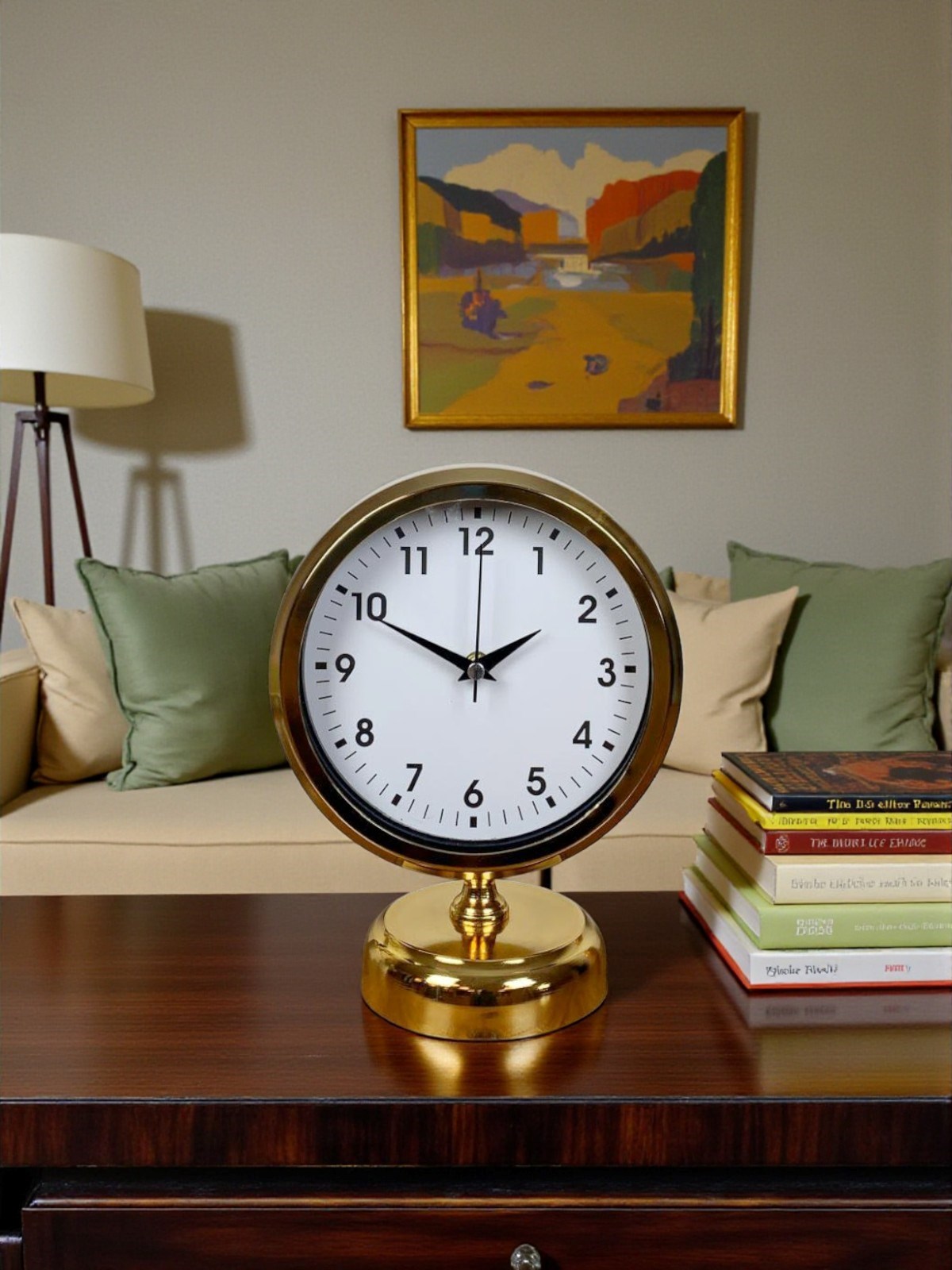 Sağlam ve dengeli metal tabanı sayesinde masa üzerinde güvenle durur. Gold gövdenin parlak yüzeyi, ışığı zarif bir şekilde yansıtarak ürünü sadece bir saat değil, aynı zamanda dekoratif bir aksesuar haline getirir. Zamansız tasarımı sayesinde modası geçmeden uzun yıllar kullanılabilecek, şık ve kullanışlı bir masa saatidir.