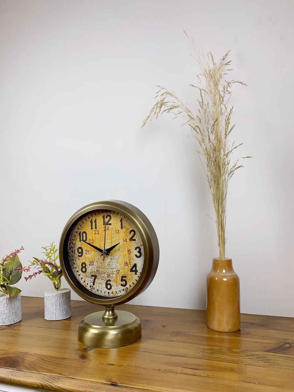 Şık ve modern tasarımıyla dikkat çeken  eskitme kaplama masa saatimiz, sessiz akar saniye mekanizmasıyla konforlu bir kullanım sunar. Gerçek cam koruma paneli sayesinde uzun ömürlü ve dayanıklıdır. Estetik görünümüyle hem ev hem de iş yerleri için ideal bir dekoratif üründür.