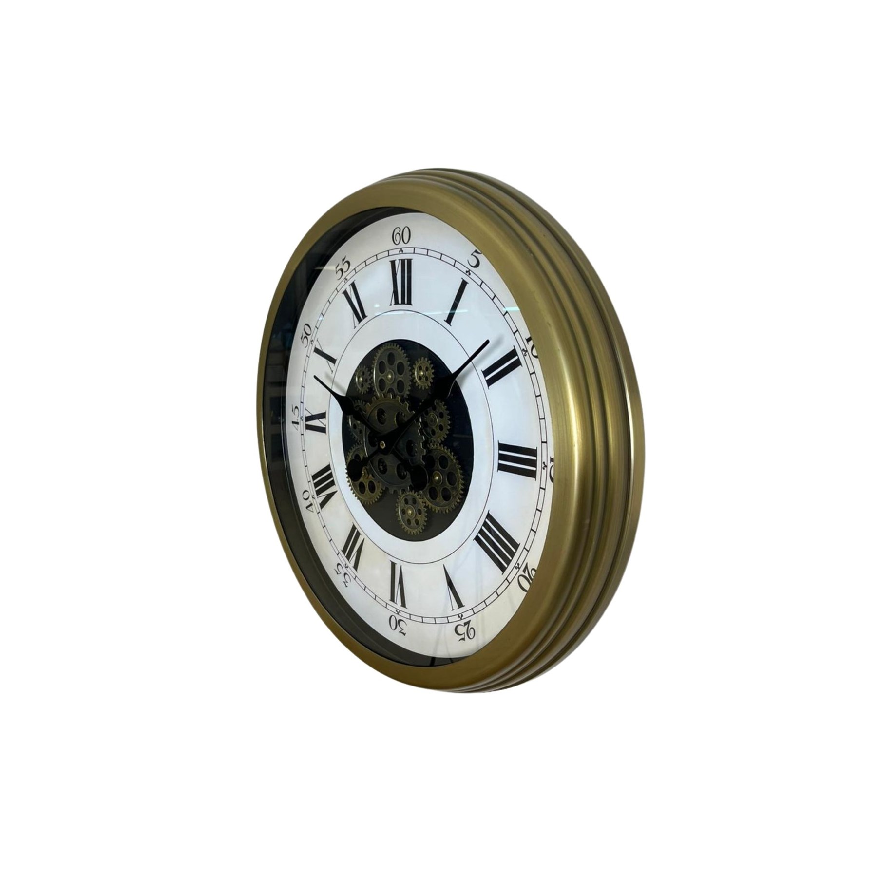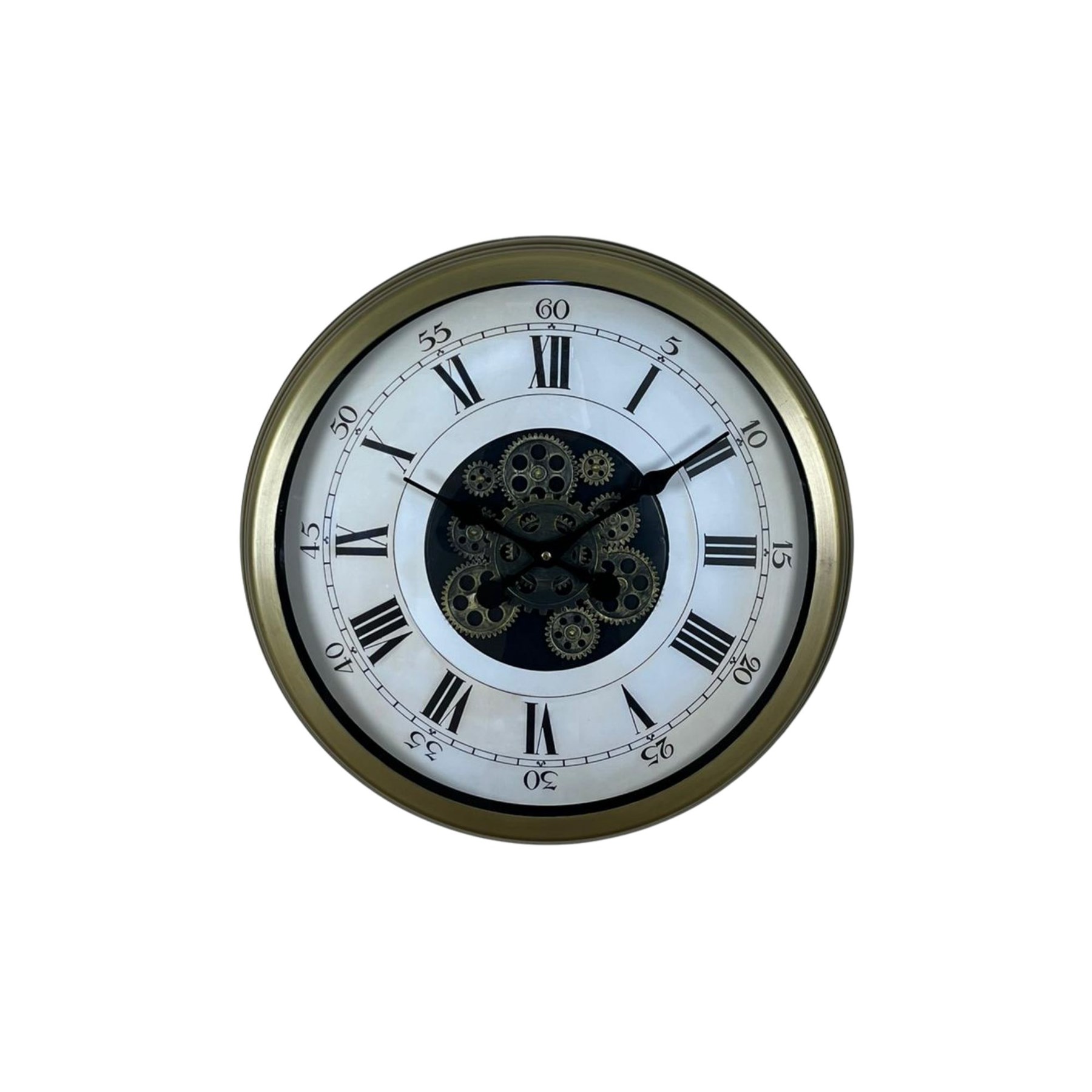 Zarif beyaz kadranı, klasik Roma rakamları ve merkezde yer alan hareketli çark detayıyla tasarlanan bu 60 cm duvar saati; modern ve klasik dekorasyon tarzını kusursuz şekilde bir araya getirir.