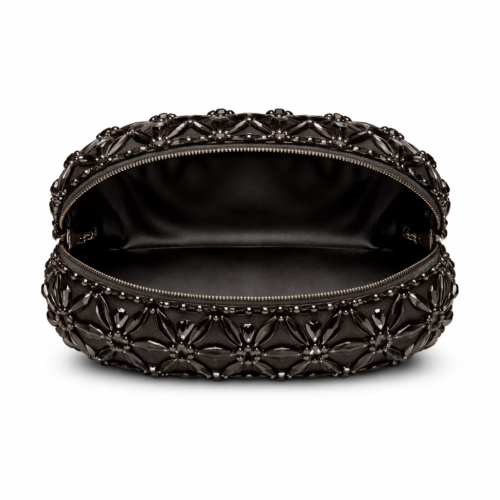 Üst bölümde konumlandırılmış fermuarlı açıklık, çantanın heykelsi formunu bozmadan kontrollü ve güvenli bir kullanım sunar. İç hacim, kristal örgüyle doğrudan teması engelleyecek şekilde yerleştirilmiş %100 saten astar ile kaplanmış; pürüzsüz, düzenli ve korunaklı bir iç yapı elde edilmiştir.