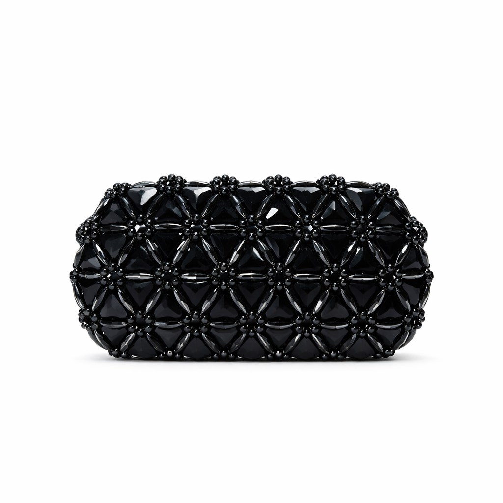 Atelier Emine’in Crystal Gelato Couture serisine ait Fresco Smoky, optik sınıfı kristal boncukların modüler kafes örgü tekniğiyle bir araya getirilmesiyle tamamen el işçiliğiyle üretilmiş, oval hacimli heykelsi bir clutch modelidir.