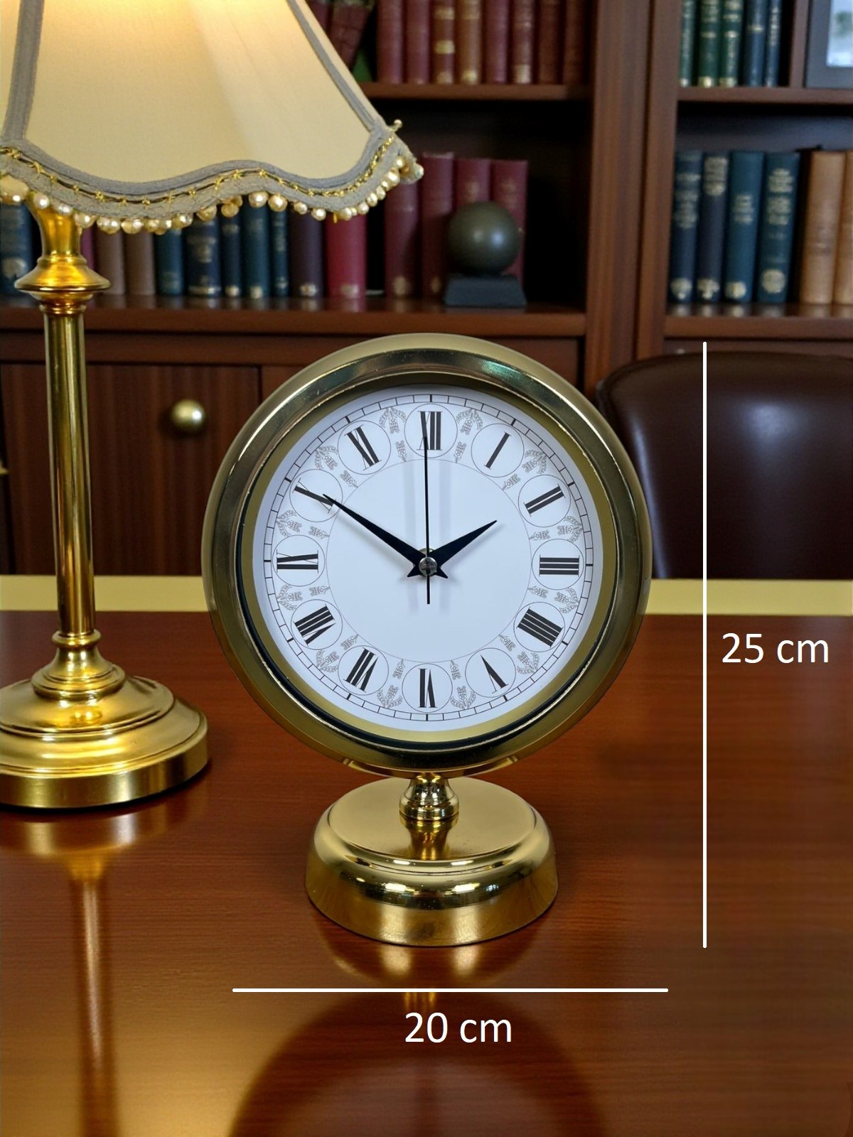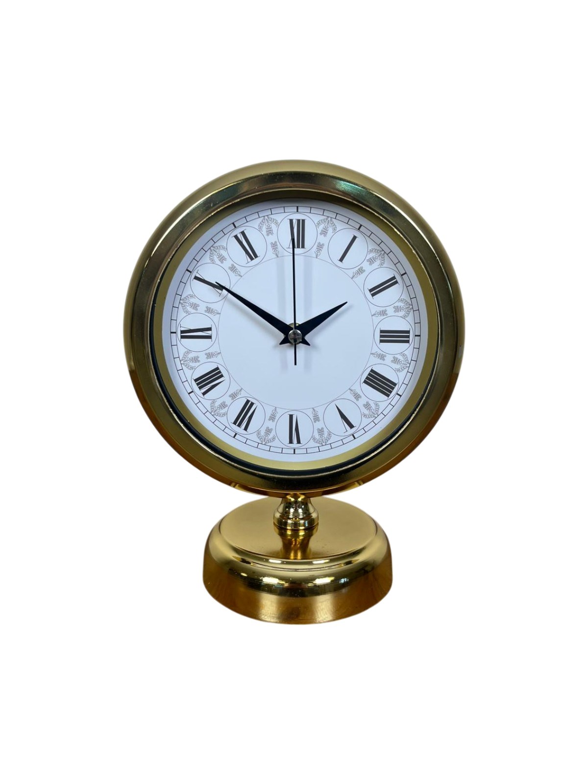 Dengeli ve sağlam taban yapısı sayesinde masa üzerinde güvenle durur, devrilme yapmaz. Gold kaplama kasa, dekorasyona lüks bir dokunuş eklerken, klasik Roma rakamları saate nostaljik bir karakter kazandırır. Hem günlük kullanım hem de şık bir hediye alternatifi olarak tercih edilebilir.