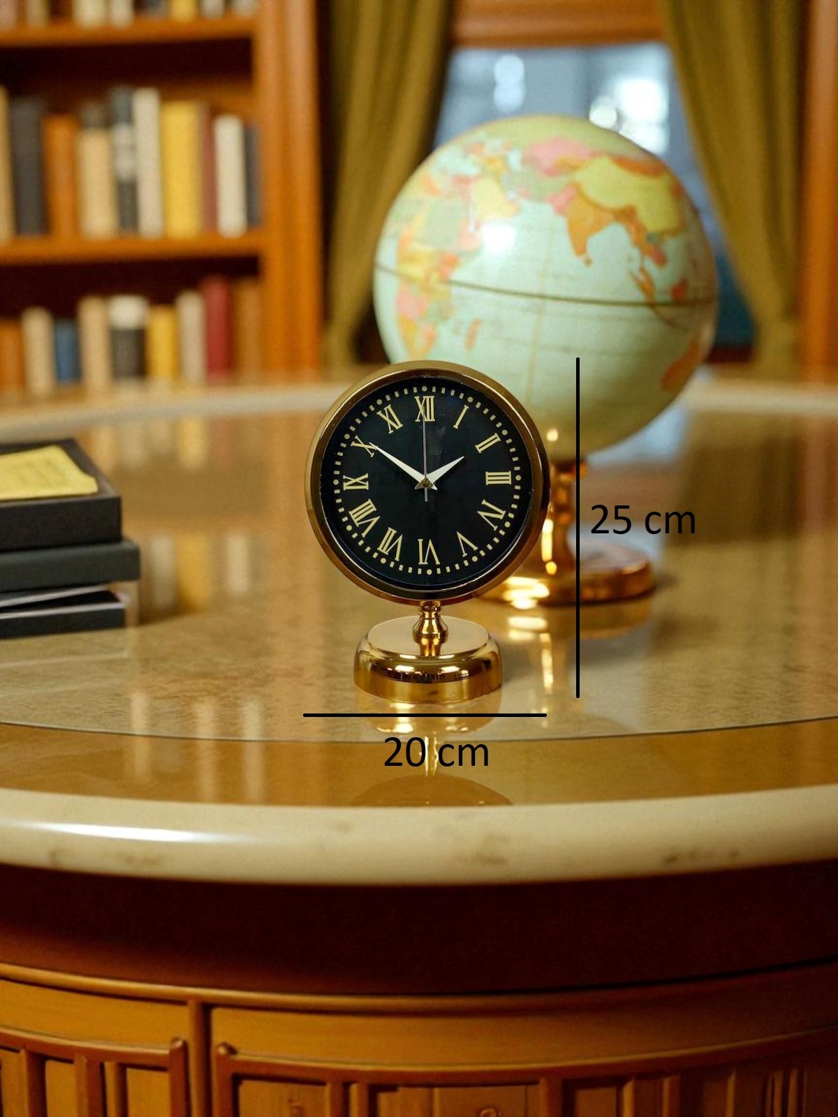 Gold metal tabanı sayesinde masa üzerinde dengeli ve sağlam bir şekilde durur. Hem dekoratif obje hem de fonksiyonel bir zaman göstergesi olarak uzun yıllar sorunsuz kullanım sağlar. Şık tasarımı sayesinde özel günlerde hediye olarak da tercih edilebilecek prestijli bir üründür.