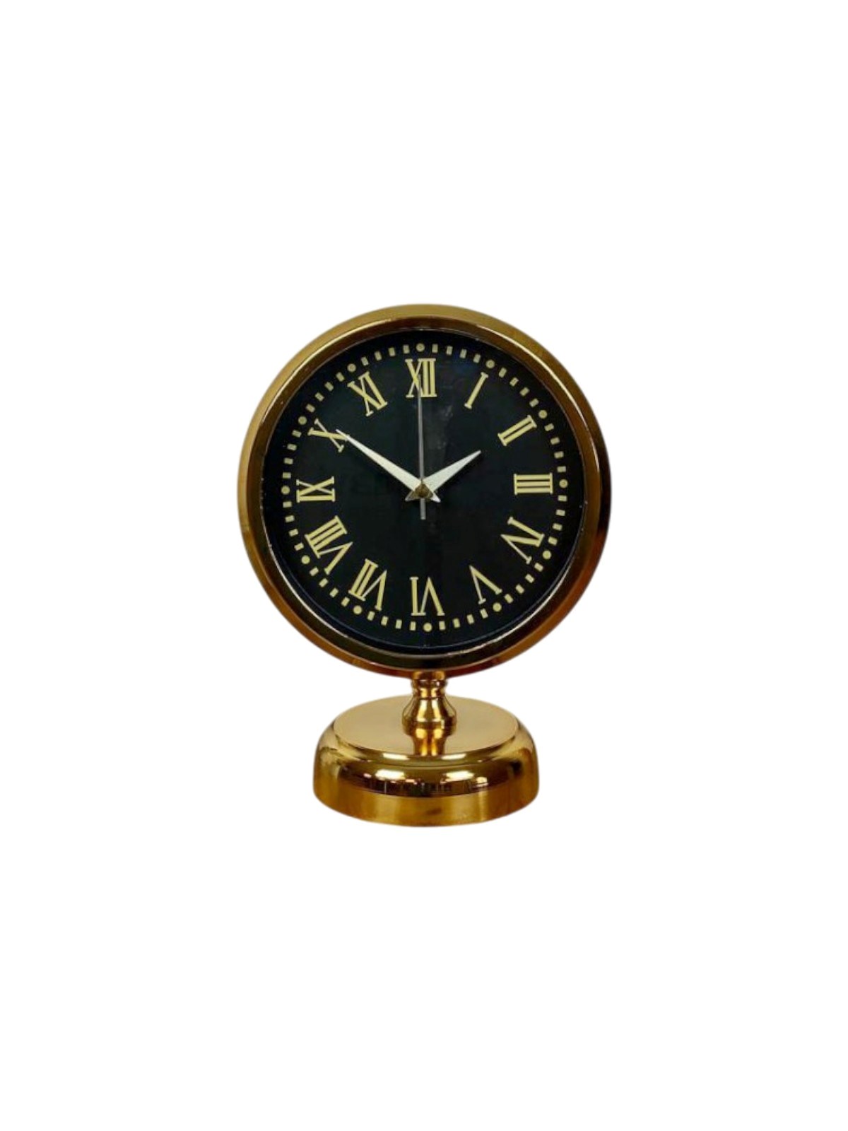 Klasik zarafeti modern detaylarla buluşturan GOLD 25 x 20 cm masa saati, siyah kadranı ve gold metal gövdesiyle bulunduğu her ortamda güçlü ve prestijli bir duruş sergiler. Roma rakamlı kadran tasarımı, saate nostaljik bir karakter kazandırırken siyah–gold kontrastı sayesinde lüks ve dikkat çekici bir görünüm sunar. Ofis masaları, salon konsolları, çalışma odaları ve vitrinler için dekoratif bir tamamlayıcıdır.