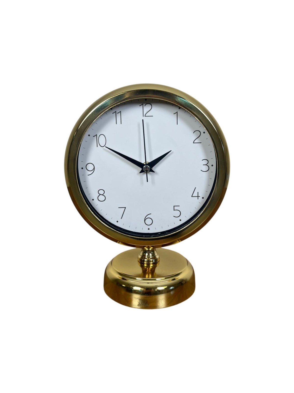 Dekorasyonda küçük ama etkisi büyük dokunuşlar vardır… Bu gold masa saati, bulunduğu ortamda hemen fark edilen lüks ve düzenli bir görünüm oluşturur. Sade beyaz kadranı, net okunabilir rakamları ve gold çerçevesiyle hem modern hem de klasik dekorasyonlara rahatça uyum sağlar. Çalışma masasında profesyonel bir hava, konsol üzerinde ise tamamlayıcı bir şıklık sunar.