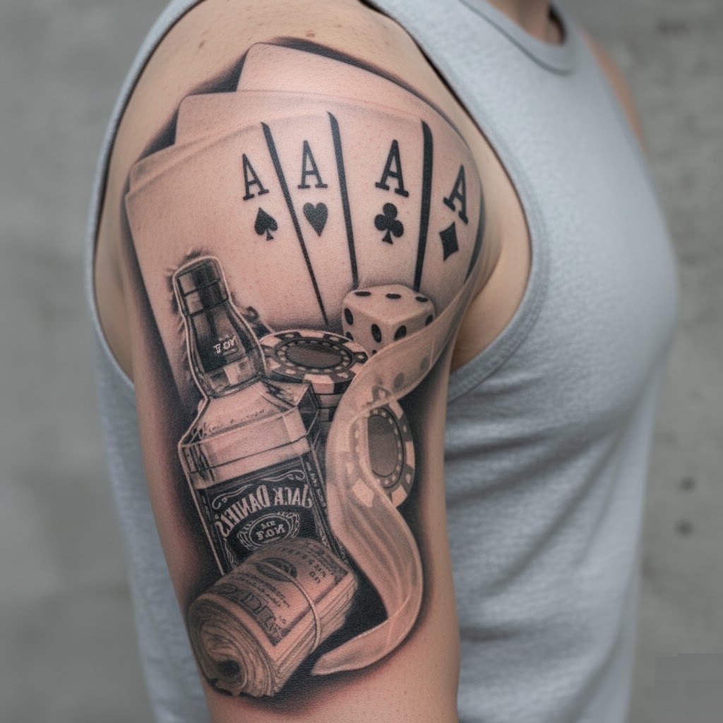 1 Kartela İskambil Dolar Zar Geçici Dövme Şablonu Büyük Boy
