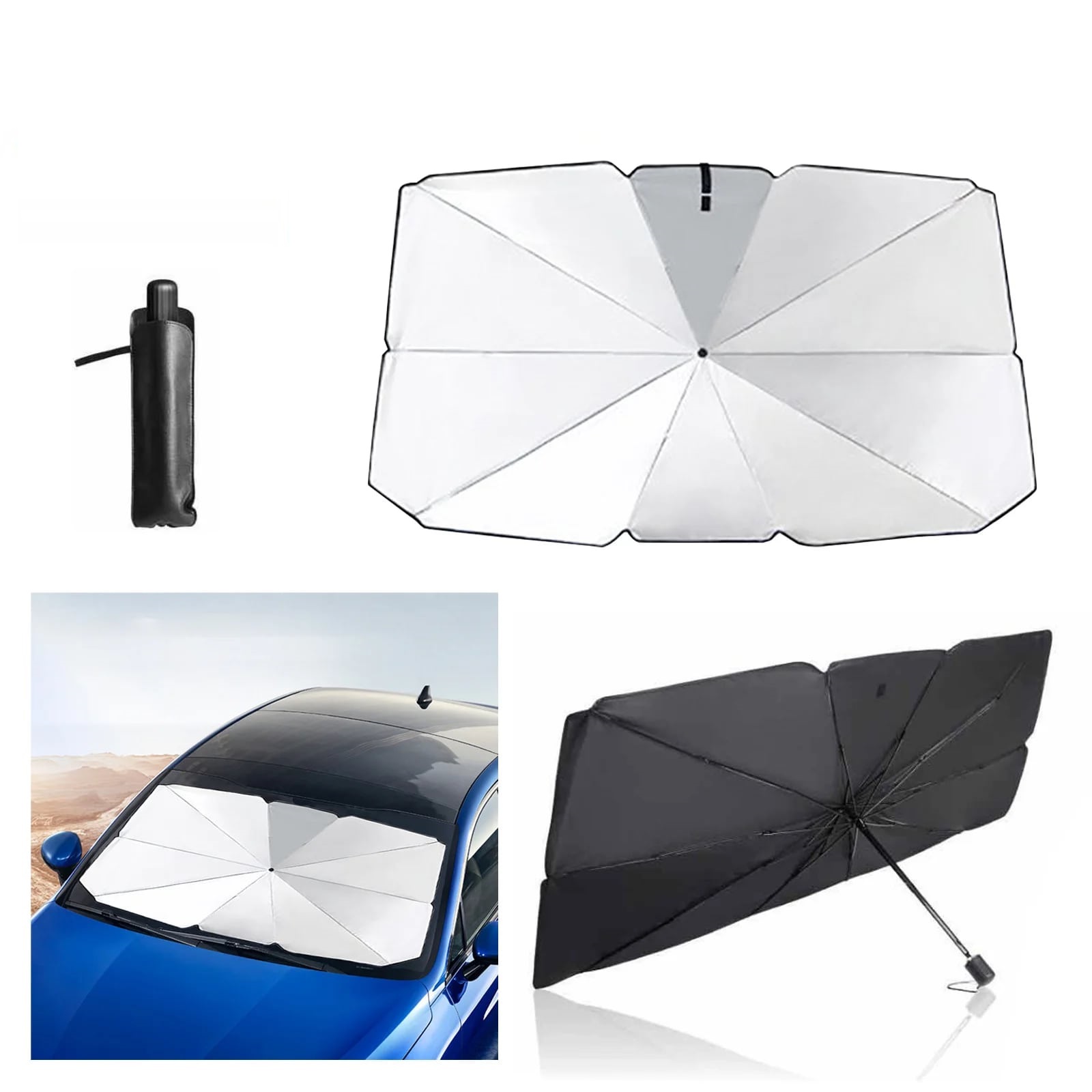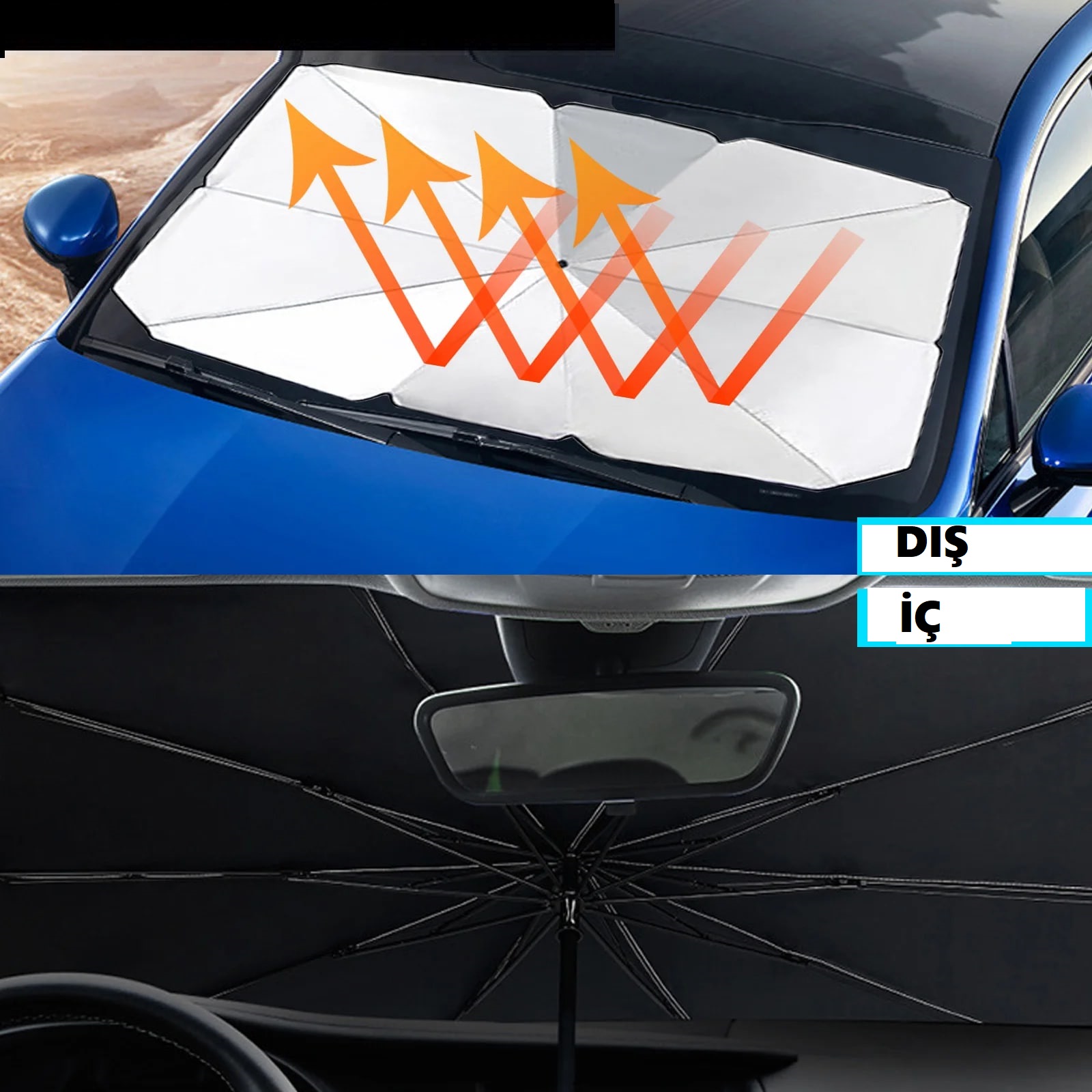 Katlanabilir Araba Ön Cam Güneşliği Şemsiye, aracınızı güneşin zararlı UV ışınlarından ve aşırı ısınmadan koruyan pratik bir çözüm sunar.
