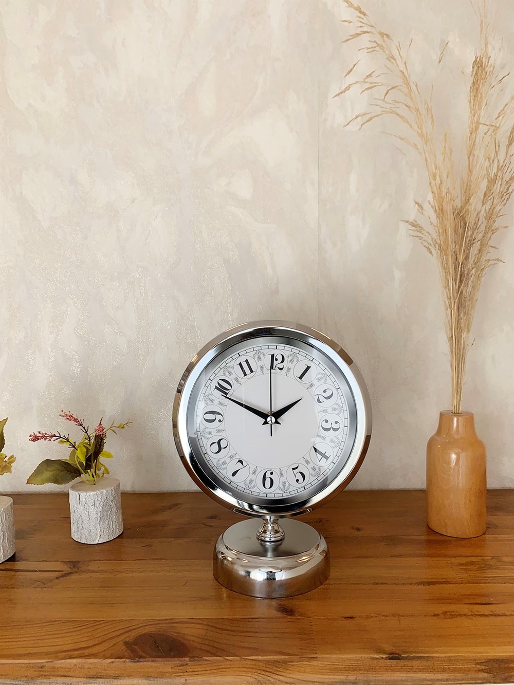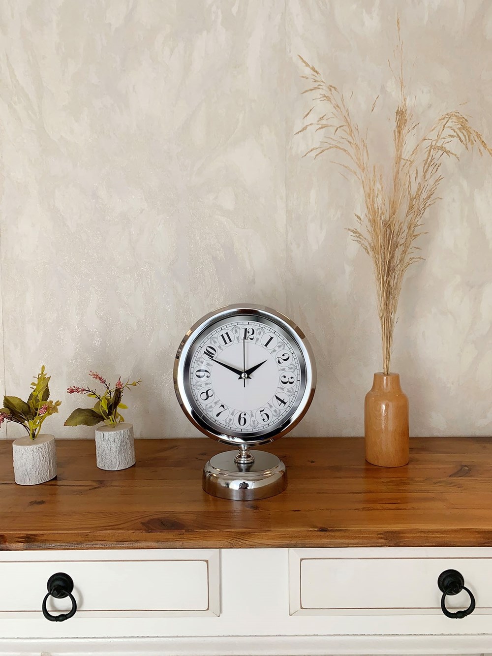 ® Yeni Ürün Krom Metal Desenli Masa Saati 25×20 cm