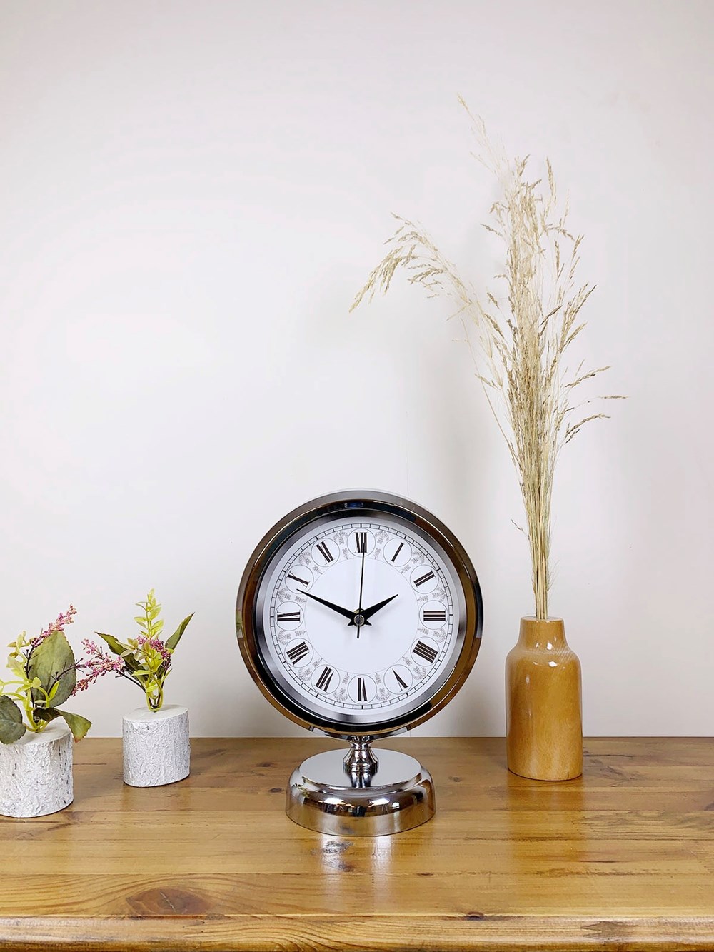 Şık ve modern tasarımıyla dikkat çeken krom kaplama masa saatimiz, sessiz akar saniye mekanizmasıyla konforlu bir kullanım sunar. Gerçek cam koruma paneli sayesinde uzun ömürlü ve dayanıklıdır. Estetik görünümüyle hem ev hem de iş yerleri için ideal bir dekoratif üründür.
