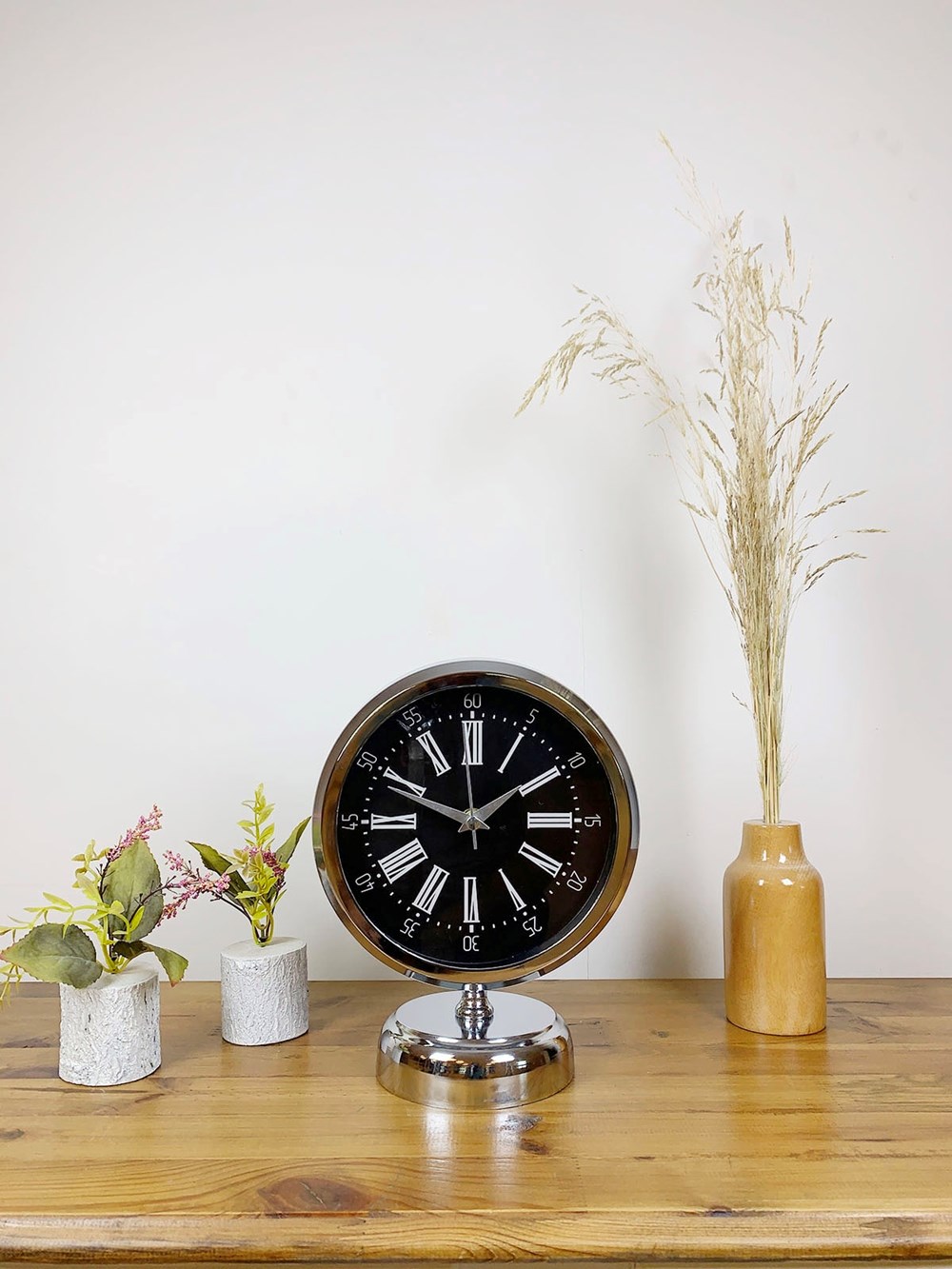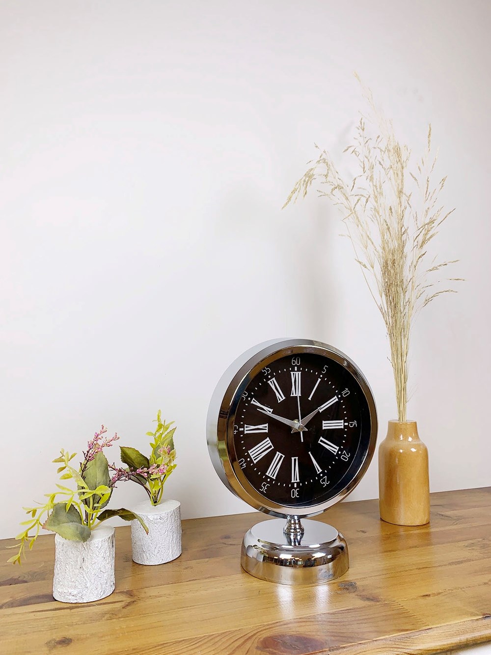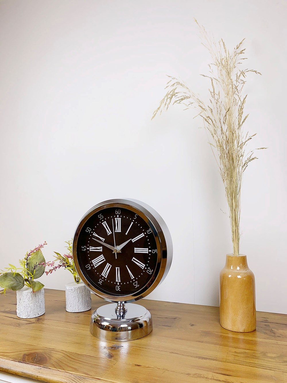 ® Yeni Ürün Krom Metal Roma Rakamlı Masa Saati 25×20 cm