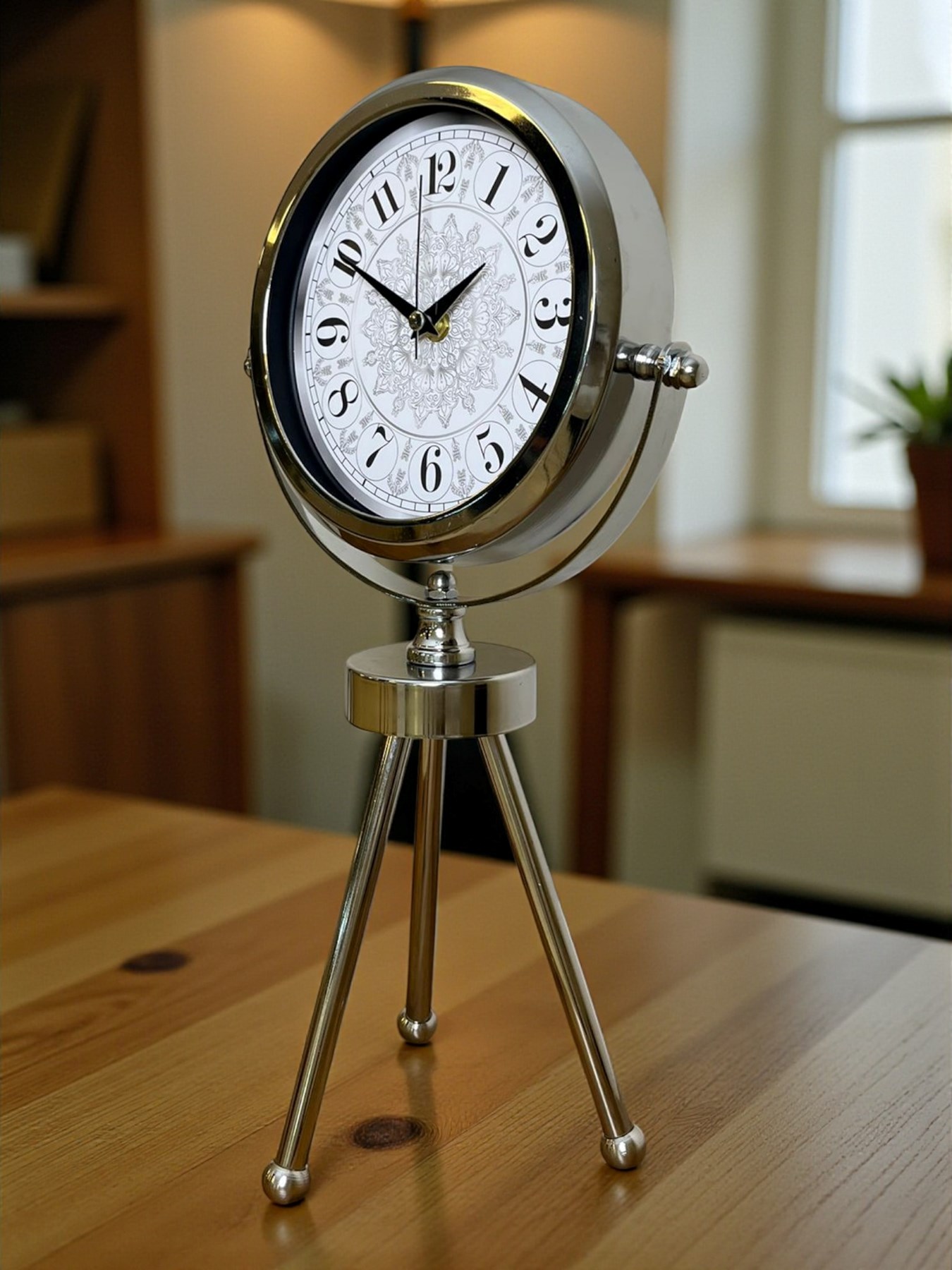 45 x 25 cm ölçülerindeki bu şık krom üç ayaklı masa saati, modern tasarımı ve parlak metal gövdesiyle her ortamda dikkat çeken zarif bir dekorasyon ürünüdür. Gerçek cam korumalı kadranı sayesinde uzun ömürlü ve net bir görüntü sunar. Sessiz çalışan mekanizması ile ev, ofis ve çalışma alanlarında konforlu bir kullanım sağlar. Dayanıklı metal tripod ayak yapısı, saati sadece bir zaman göstergesi değil aynı zamanda estetik bir obje haline getirir.