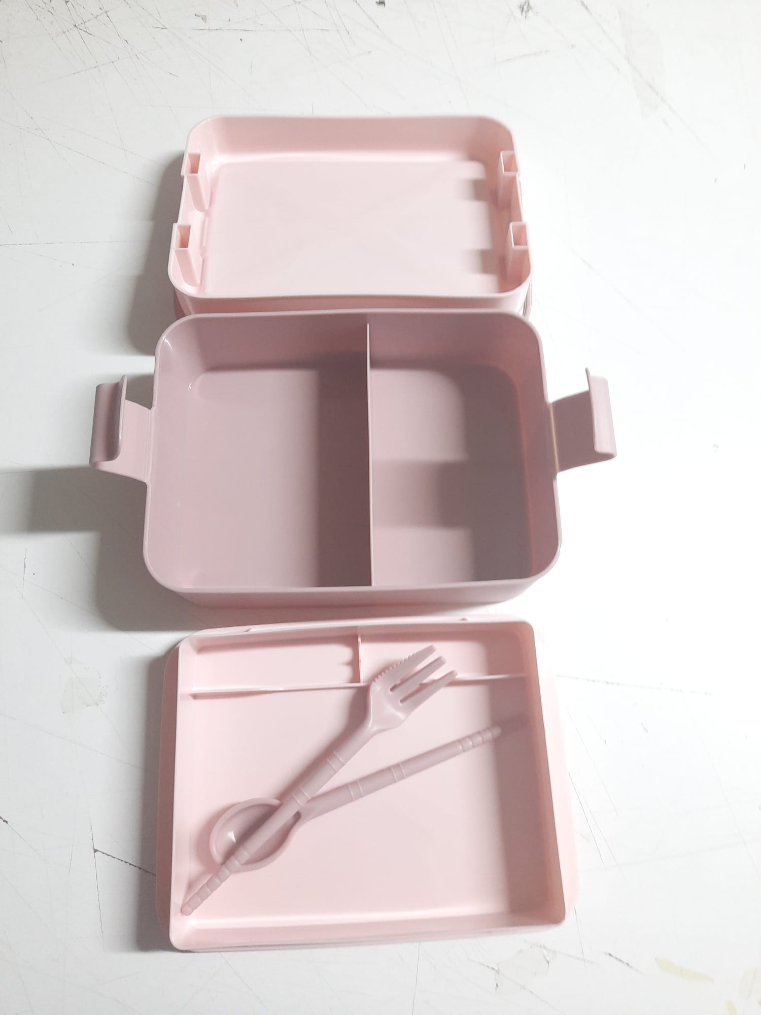 Kulplu Beslenme Kabı 2 Bölmeli Mandallı Diyet Kabı -Çatal Kaşık Dahildir