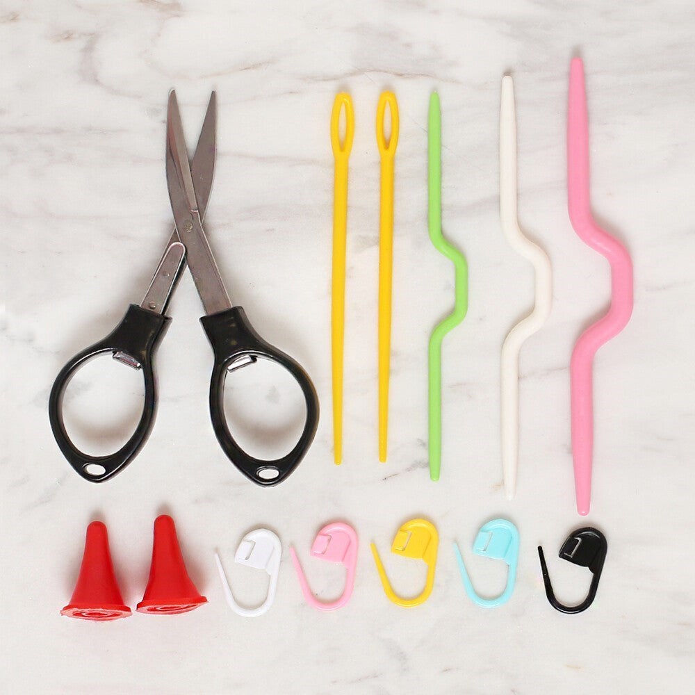 Loren Renkli Metal Yün tığlarının yanı sıra içerisinde örgü ile ilgili birçok aksesuarlarda bulunur. Kolayca taşınabilirdir.