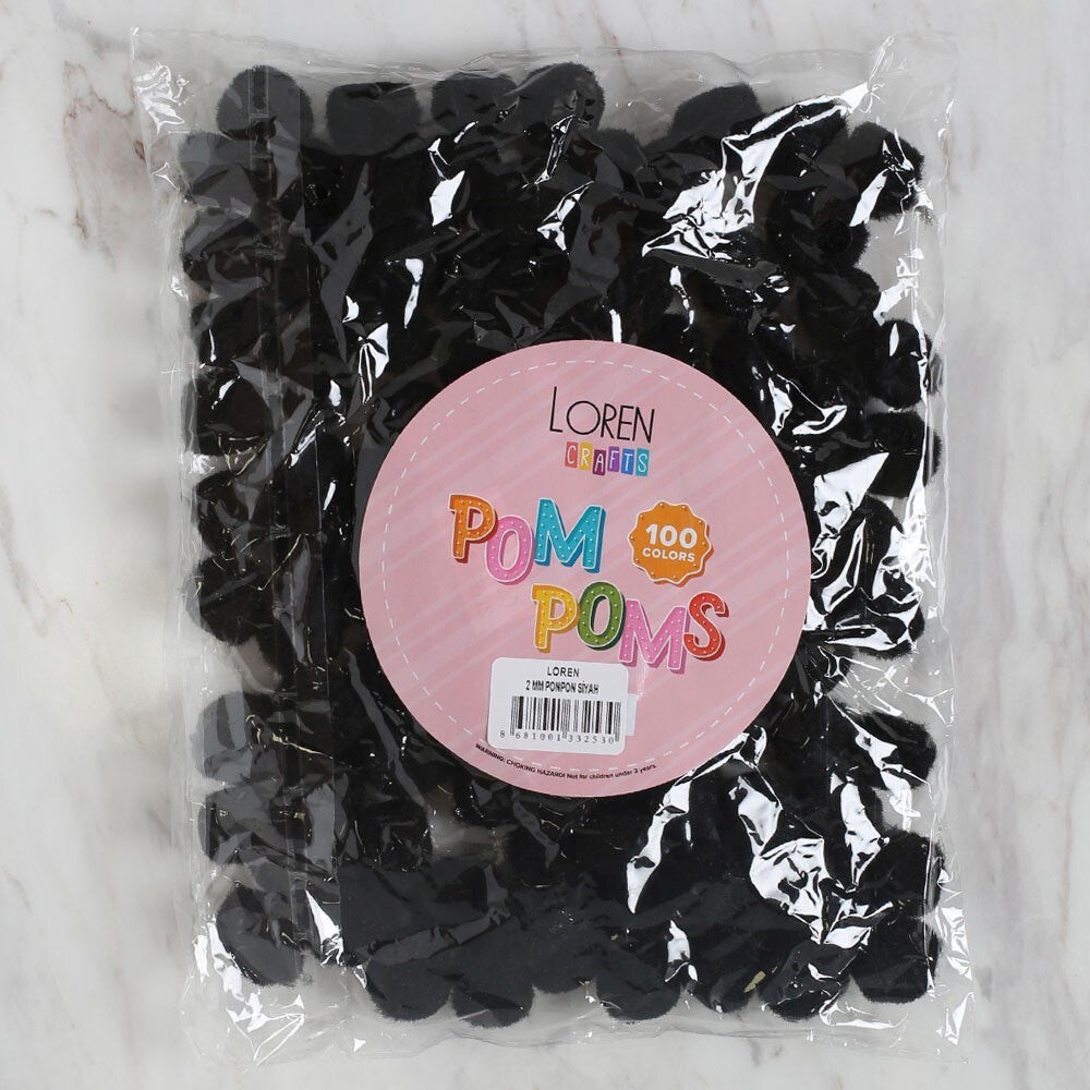 ® LOREN CRAFTS 2 CM 100 ADET SİYAH PONPON