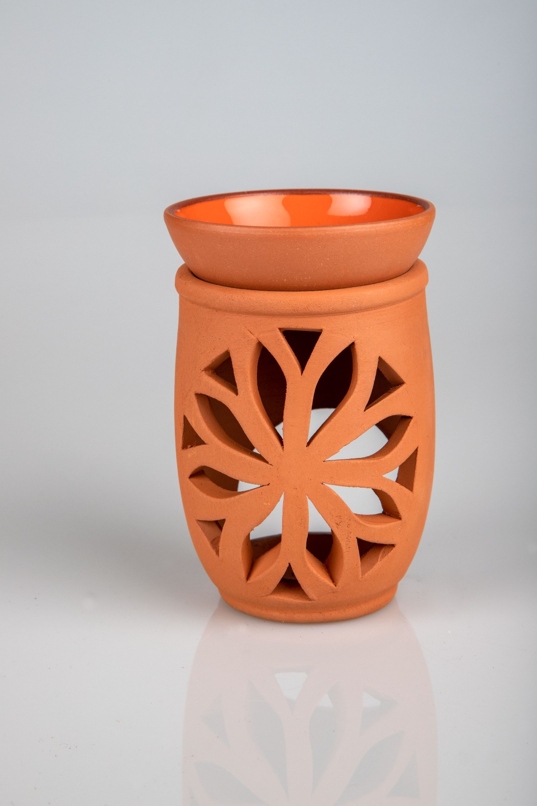 Aromaterapi yağlarıyla kullanılır, altına mum konur, üstüne isteğinize göre aromaterapi yağları,adaçayı veya tütsü koyabilirsiniz üst kısım kasesidir .