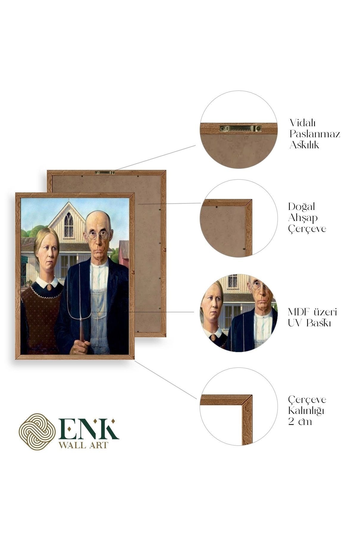 Tablolarımız gerçek ahşap çerçevelidir, çerçeve görünümlü değildir. ; ENK Wall Art Olarak Ahşap Çerçeveli Tablolar Üretiyoruz. ; Tablolarımız tek parça, 3 Parça, 5 Parça ve daha çok kategoride tasarımcılarımız tarafından ev ve ofisleriniz duvarları süslemek için tasarlanmaktadır. ; Ahşap Çerçeveli Duvar Tabloları ile yaşam alanlarınıza yepyeni bir görünüm kazandırın. ; Yıllarca dayanacağından emin olduğumuz sağlam çerçevelere sahip yüksek kaliteli ahşaptan üretilmiştir. ; İster bir köşeyi süslemek isteyin, ister evinizi yenilemek , bu ahşap tablolar herhangi bir yaşam alanına stil ve işlev getirecektir. ; Duvara kolay bir şekilde monte edilir. ; Uzun ömürlü kullanım için sağlam ahşap çerçeveden yapılmış, dayanıklı ve güçlü. ; Duvara monte edilebilir tasarımı, yaşam alanlarında veya yatak odalarında duvara kolayca asılmasını sağlar. ; Pürüzsüz üst yüzeyi temiz kalmayı kolaylaştırır. ; Herhangi bir stile uyacak şekilde çeşitli renklerde gelir. ; Kolay yeniden düzenleme için hafif ve portatif. ; Küçük oturma odaları veya dar alanlar için mükemmel boyut. ; Eve taşınma hediyesi olarak idealdir. ; Herhangi bir evin dekorunu süslemek için harika bir yol. ; Herhangi bir modern veya çağdaş iç tasarıma mükemmel bir katkı. ; Tablo içi 3 mm mdf (ahşap) malzeme üzeri uv baskıdır. ; Renkler canlı ve solma yapmaz. ; Kırılma, bükülme ve çizilmeye karşı dayanıklıdır.;
