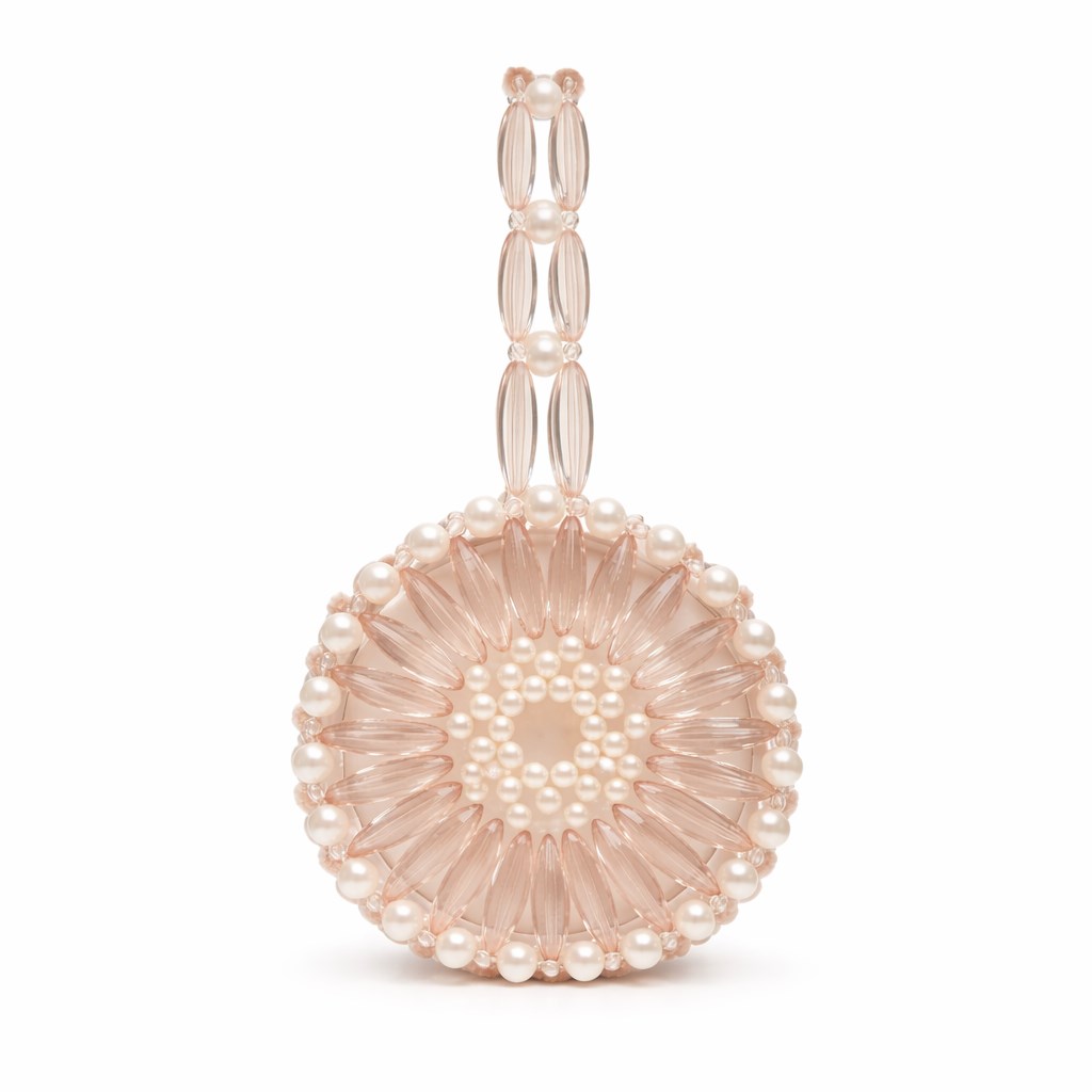 Üst bölümde konumlanan dikey kulp, gövdedeki örgü diliyle uyumlu olacak şekilde ardışık kristal ve inci modüllerinden oluşturulmuştur. Kulp, yük taşıma noktasında form bozulmasını önlemek için çok noktalı bağlantı tekniğiyle gövdeye entegre edilmiştir. Model, elde taşımaya yönelik mini bag formunda tasarlanmış olup zincir veya omuz askısı kullanılmamıştır.