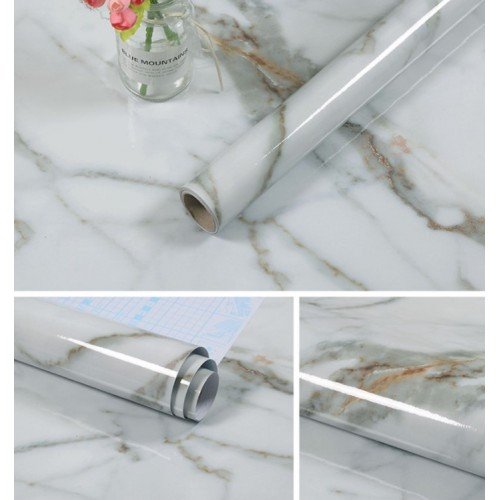 Mermer desenli kaplama duvar kağıdı yapışkanlı folyo ürünü su geçirmez ve ateş almaz özelliğe sahiptir.