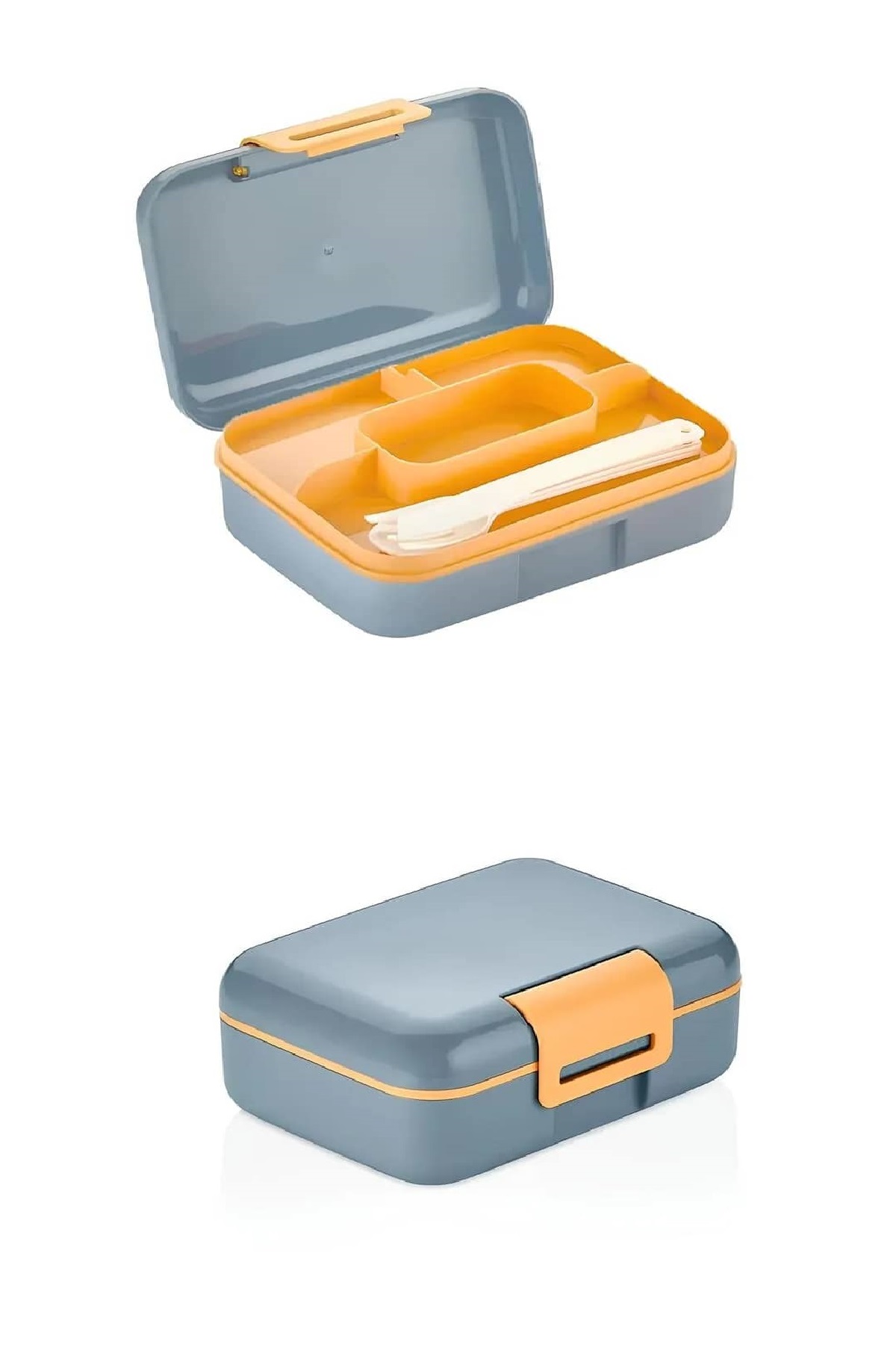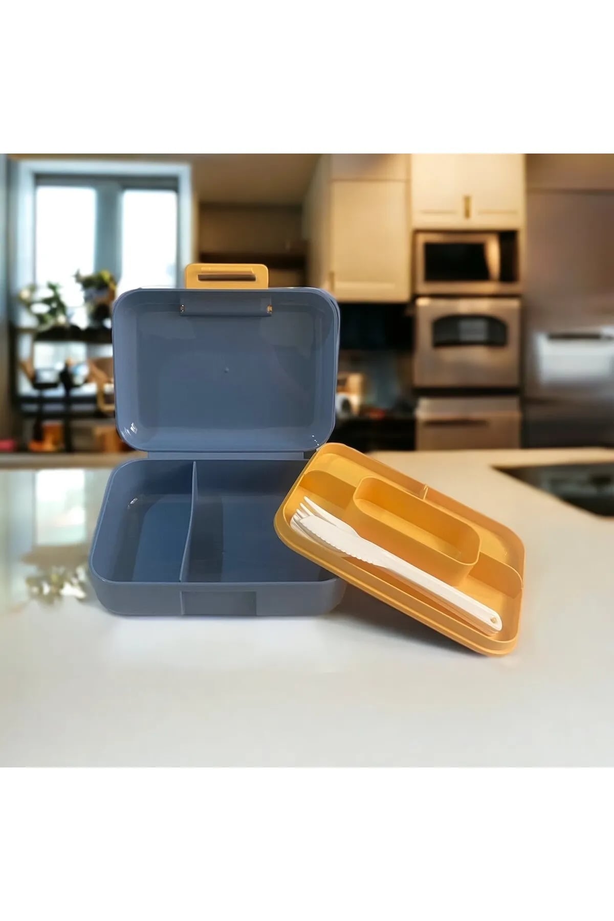 Biyomak® Meyve Suyu Bölmeli - Tabaklı Beslenme Kabı Diyet Kabı -Çatal Bıçak Kaşık Dahildir