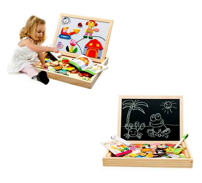 Kara tahta kısmında yazı yazabileceğiniz tebeşirler ve tahta silgisi paketin içerisinde mevcuttur.