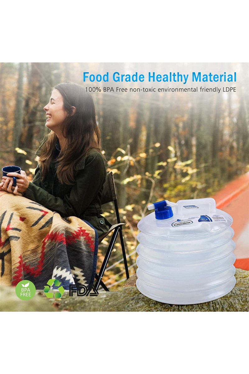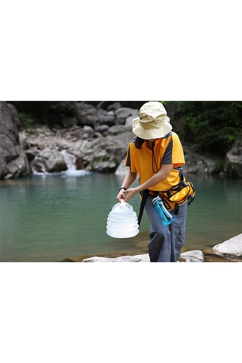 Akordiyon tarzı portatif musluk kapaklı 10 Litre katlanabilir su kova kabı, açık hava yürüyüşleri için gıda sınıfı kamp su depolama taşıyıcı sürahi acil durum dağcılık araç kamp plaj gezi hafif taşınabilir yeniden kullanılabilir tasarımlı su kabı oval bir şekle ve yenilikçi bir tasarım olan akordiyon bir tasarım konseptine sahiptir. Katlamanın en kolay yolu da budur. Kullanırken suyu doldurmak için kapağı çevirip açıp çıkartmalısınız. Saklarken sadece akordiyon gibi sıkıştırmanız ve kapağını kapatmanız yeterlidir. Katlanmış kalındık sadece 4.5 cm civarıdır. Musluk Kapaklı Akordiyon Portatif 10 Litre Bidon birinci sınıf PE malzemeden üretilmiştir. Çevre dostu toksik değildir. BPA PVC veya DEHP içermez, Plastik pvc kokusu ve su tadı etkilenmez.