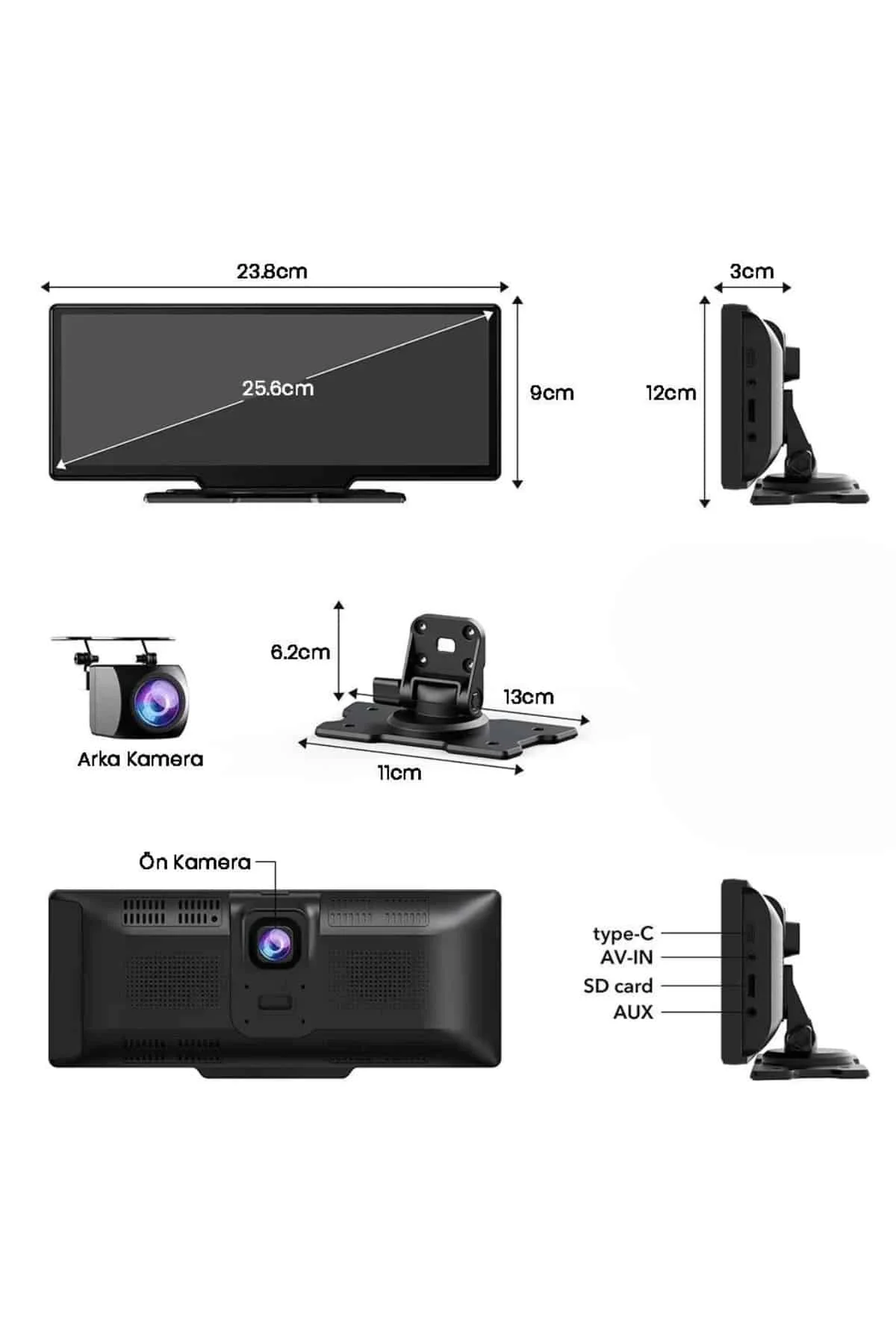 ® Yeni Ürün Android Ve İos Uyumlu Ön Arka Çift Kameralı Araç Ekranı Dokunmatik Carplay