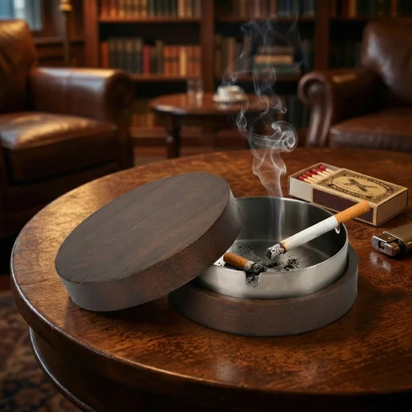 ® Yeni Ürün Kahverengi Bambu Kapaklı Küllük