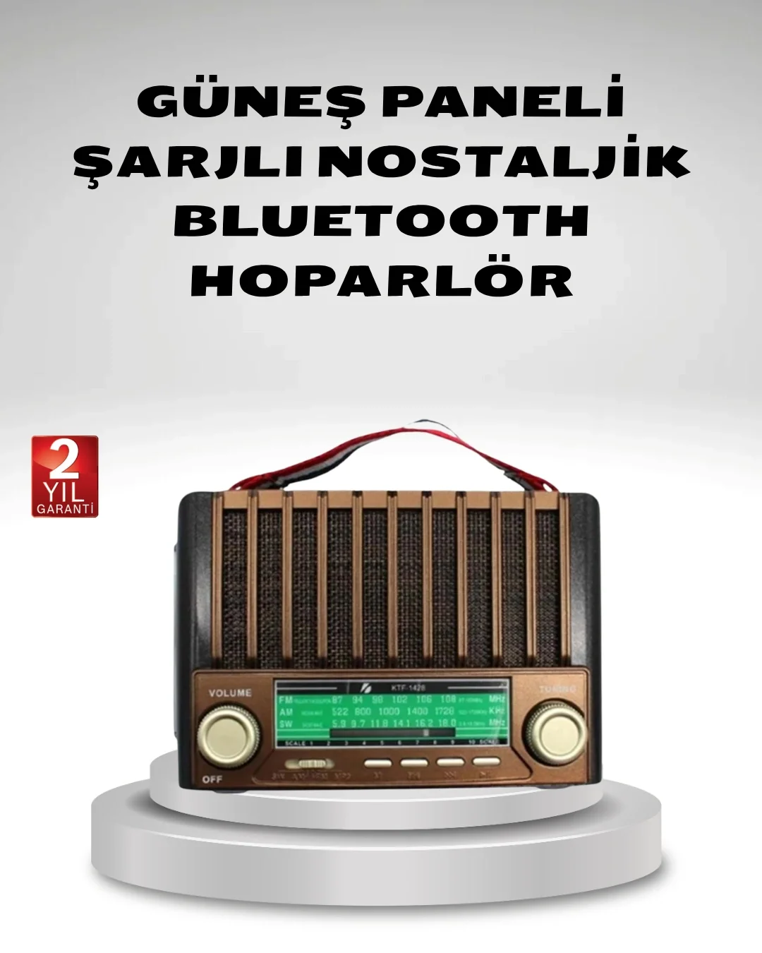 KTF-1428, klasik radyoların nostaljik tasarımını modern teknolojilerle birleştiren, son derece çok yönlü bir taşınabilir hoparlör ve radyo sistemidir. Hem iç hem dış mekânlarda kullanılmak üzere tasarlanan bu model, özellikle elektrik erişiminin sınırlı olduğu bölgelerde büyük avantaj sağlar. Üzerinde bulunan dahili güneş paneli, cihazın güneş ışığıyla kendi kendini şarj etmesine imkân tanır. Böylece kamp, piknik, bahçe aktiviteleri veya elektriğin olmadığı köy ortamlarında bile kesintisiz müzik keyfi yaşayabilirsiniz.Hoparlör, FM/AM/SW üç bantlı radyo alıcısı ile geniş bir frekans aralığında yayınları net şekilde dinleme imkânı sunar. Klasik radyo sevenler için nostaljik hissi korurken modern teknolojiyle desteklenen güçlü radyo performansı sağlar. Geniş aralıklı sinyal alımı sayesinde şehir içinde olduğu kadar kırsalda da yüksek çekim gücü sunar.KTF-1428’in sadece radyo özelliği değil, aynı zamanda medya oynatma yönü de oldukça gelişmiştir. USB girişine, SD karta ve TF kart desteğine sahip olan cihaz, MP3 formatındaki ses dosyalarını doğrudan çalabilir. Böylece yanınızda taşıdığınız müzikleri ek bir cihaza ihtiyaç duymadan kolayca dinleyebilirsiniz. Ayrıca Bluetooth bağlantısı sayesinde telefon, tablet veya bilgisayardan kablosuz olarak müzik aktarma imkânı da mevcuttur. Bu özellik, modern hoparlörlerin sunduğu konforu nostaljik bir görünümle bir araya getirir.AUX girişi sayesinde kablolu bağlantı da mümkündür. Bu sayede eski cihazlardan, müzik çalarlardan veya farklı ses kaynaklarından da kolayca ses aktarabilirsiniz. Cihaz, şarj edilebilir 18650 akü ile uzun kullanım süresi sunar. Akü değiştirilebilir yapıda olduğu için yıllar boyunca sorunsuz kullanım sağlar.Dayanıklı gövdesi, taşınabilir tutacağı ve kompakt boyutları sayesinde cihazı kamp alanında, bahçede, balkonda, iş yerinde veya seyahatte rahatlıkla taşıyabilirsiniz. Nostaljik görünüm ve modern fonksiyonları bir araya getiren bu model, hem pratik hem de keyifli bir kullanım sunar. KTF-1428, her ortamda müzik dinlemek isteyen kullanıcılar için ideal bir seçenektir.