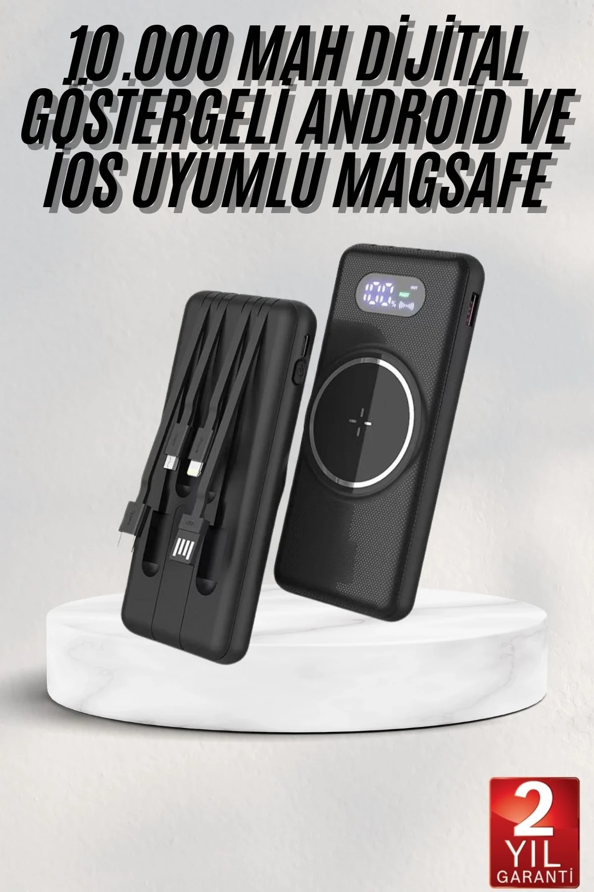 ® Yeni Ürün Wireless Powerbank 10000 Mah Led Ekranlı Dahili Kablolu Hızlı Şarj