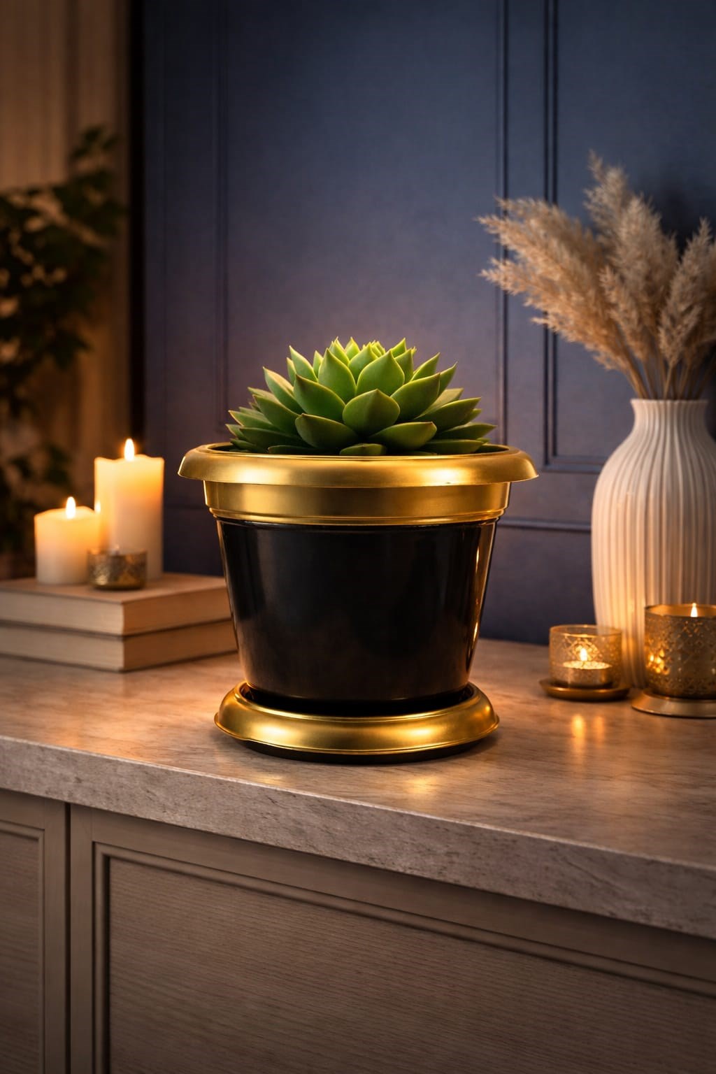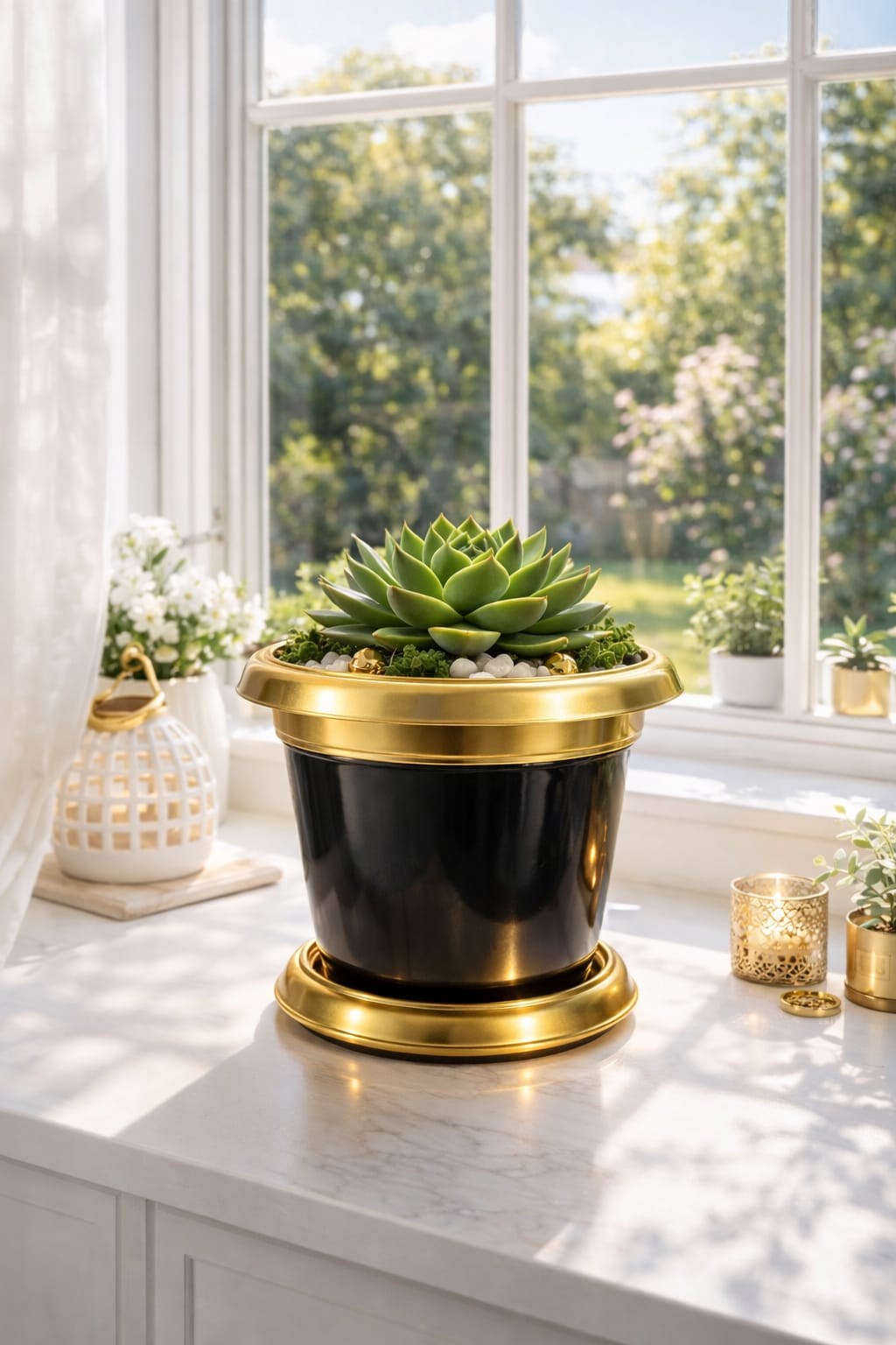 ® Yeni Ürün Gold Bilezikli 1,7 Litre Dekoratif Plastik saksı Siyah