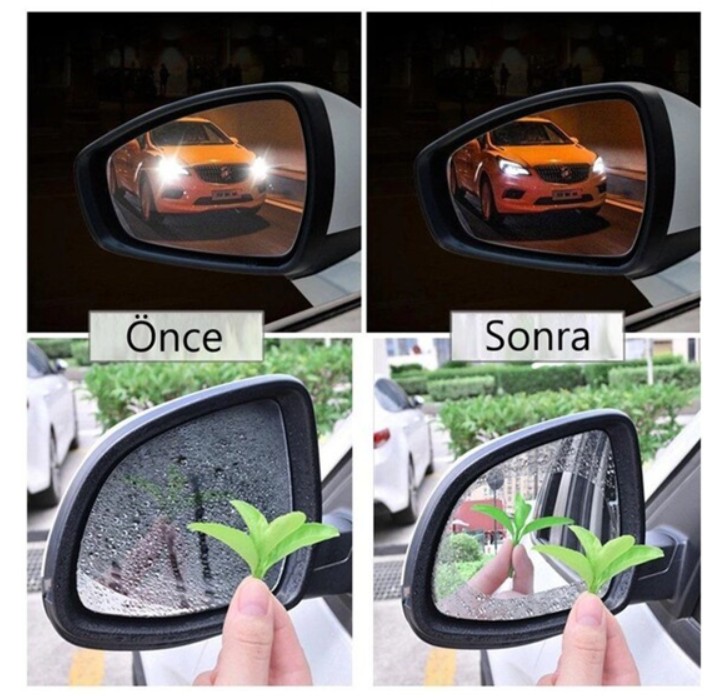 Araba aynası, yağmur aynalarınızı parlama, sis, yağmur, toz ve kirlenmeden koruyarak yağmurlu veya sisli bir günde daha iyi görünürlüğünüzü ve etkinliğinizi artırır.