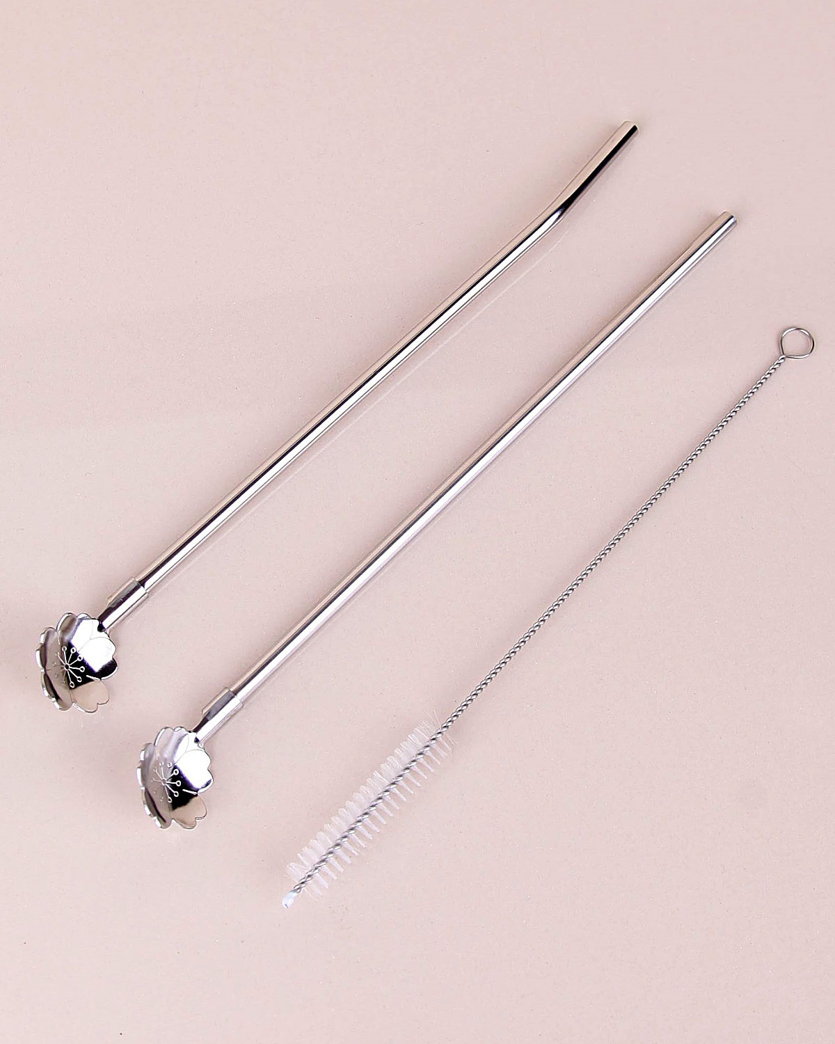 2 Adet kaşıklı metal pipet , 1 Adet Temizleme fırçası