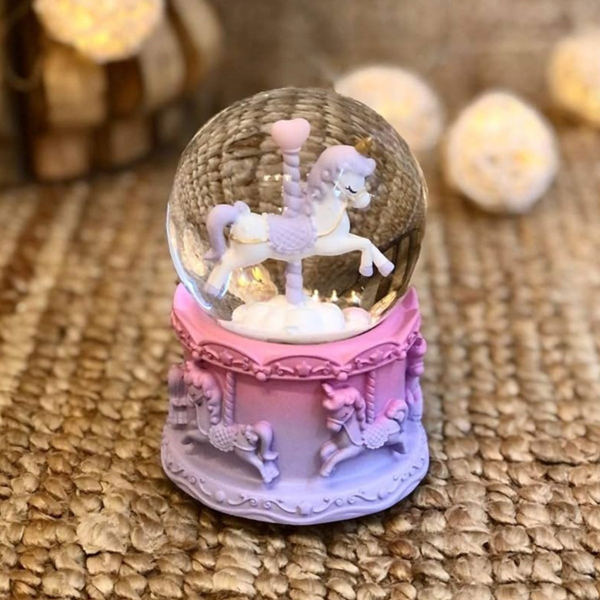 Pilli Işıklı Müzikli Kar Küresi–At Figürlü Eğlenceli Masaüstü Biblo, LED Aydınlatmalı Dekoratif Hediyelik Kar Küresi