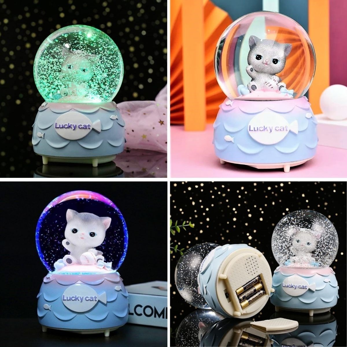 Şanslı Toplu Kedi Figürlü Eğlenceli Masaüstü Biblo, LED Aydınlatmalı Dekoratif Hediyelik Kar Küresi