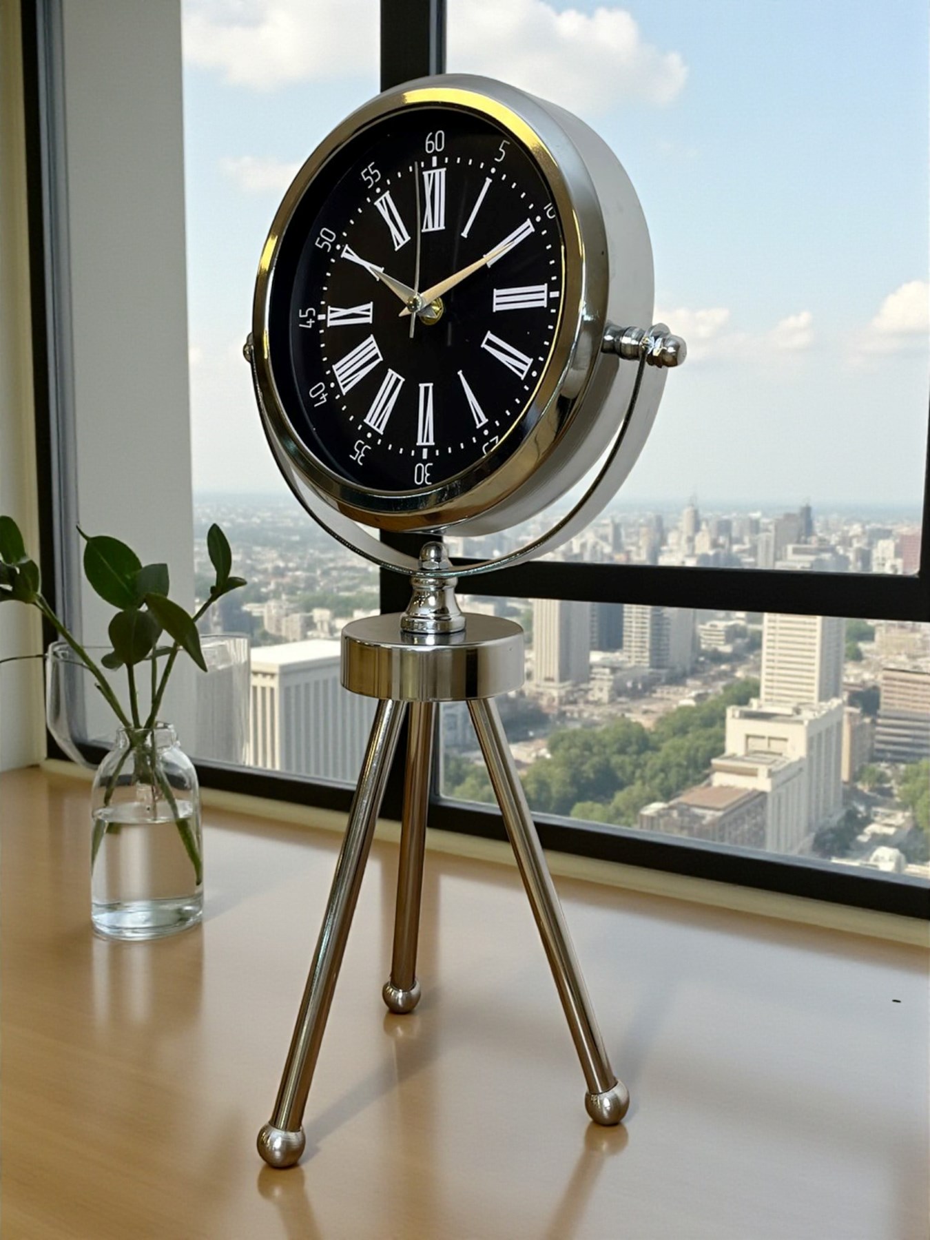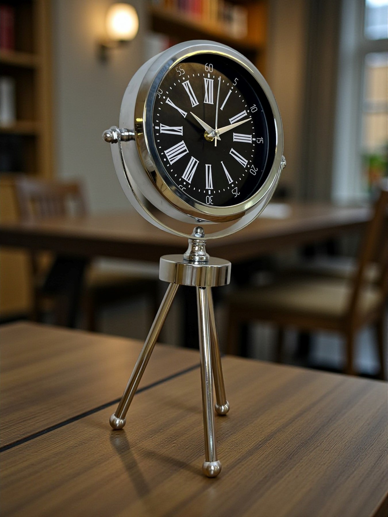 ® Yeni Ürün Prime Krom Üç Ayaklı Metal Masa Saati
