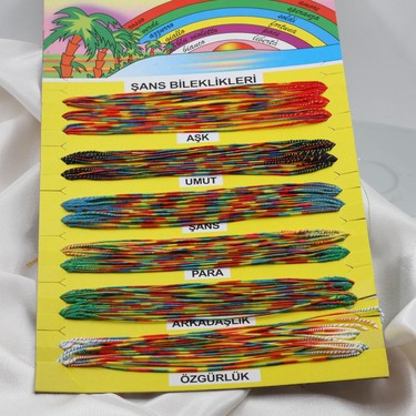 Renkli Şans Bileklikleri - 1 Kartela - ( 65 Adet )