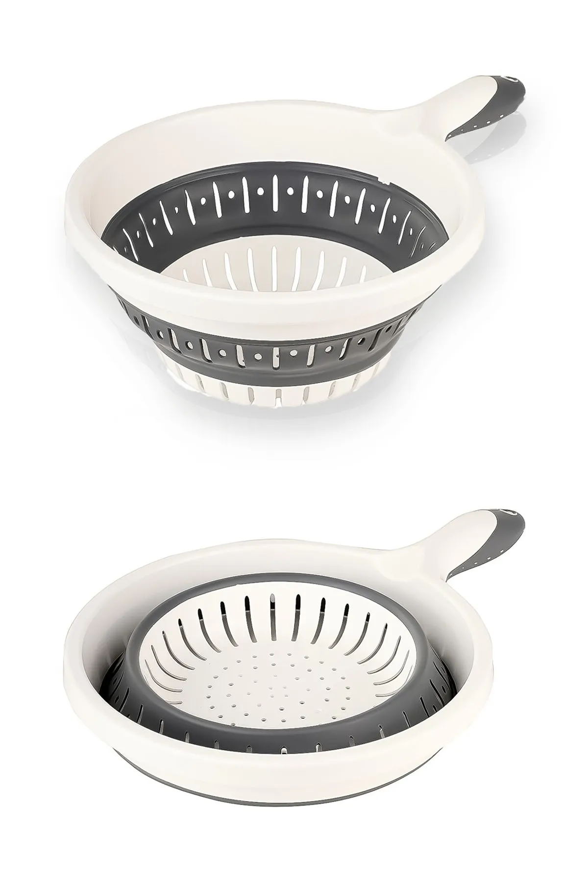 Katlanabilir Tasarım: Bu süzgeç, kullanmadığınızda kolayca katlanabilir, böylece saklama alanınızı azaltır ve mutfak düzeninizi optimize eder.