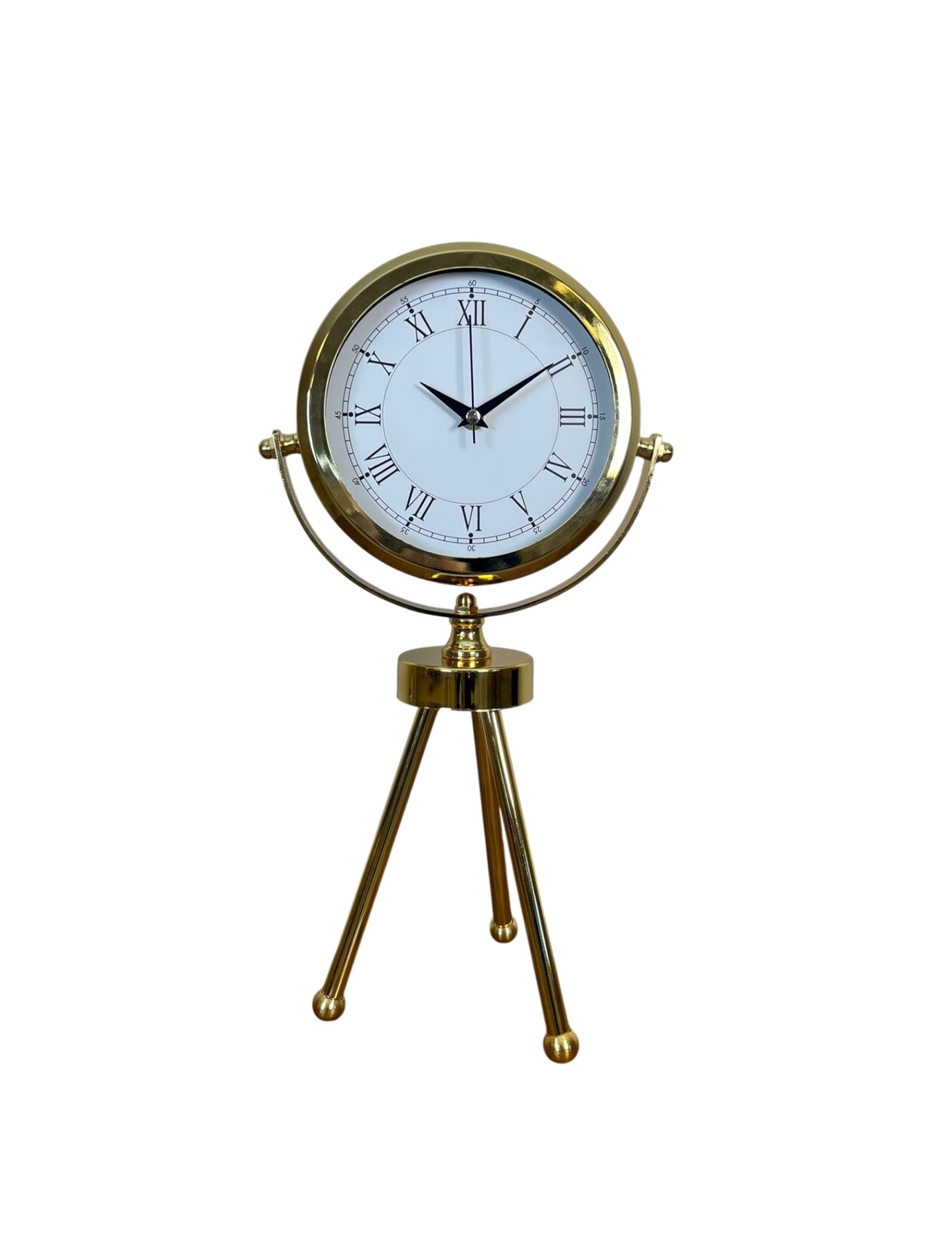 45 x 25 cm ölçülerindeki bu şık gold üç ayaklı masa saati, modern ve zarif tasarımıyla bulunduğu ortama premium bir görünüm kazandırır. Gerçek cam korumalı kadranı sayesinde hem net bir görünüm sunar hem de darbelere karşı daha dayanıklıdır. Metal tripod ayak yapısı ile dekoratif bir obje olarak da dikkat çeker. Sessiz çalışan mekanizmasıyla ev, ofis ve çalışma alanlarında keyifli bir kullanım sağlar.