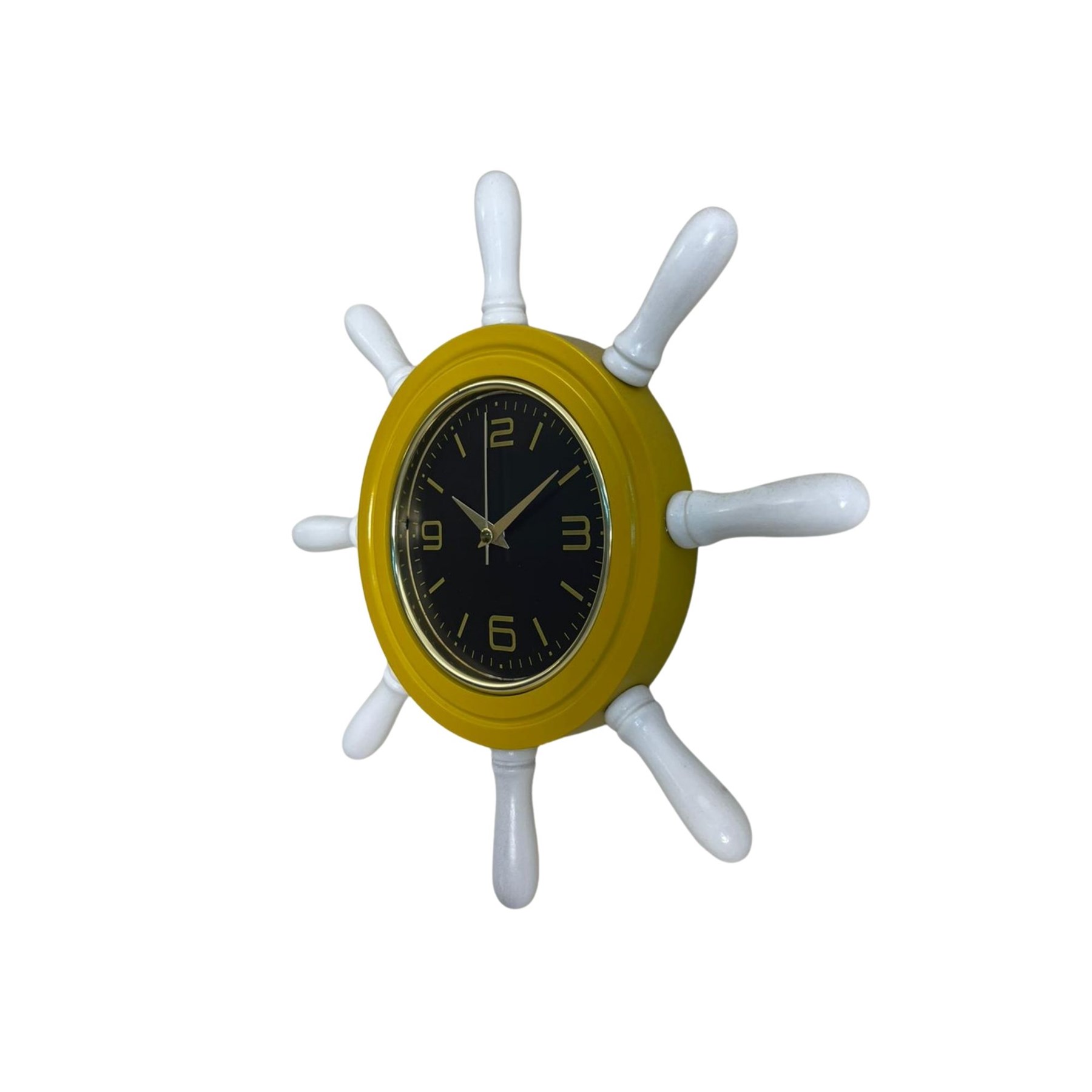 Sarı Kavelalı Dümen Duvar Saati, denizcilik temalı özgün tasarımıyla yaşam alanlarına farklı bir atmosfer kazandıran dekoratif bir duvar saatidir. Gemi dümeni formundan ilham alınarak tasarlanan bu model, sarı gövdesi ve beyaz kavelaları ile hem modern hem de marin tarz dekorasyonlara uyum sağlayan estetik bir görünüm sunar. Özellikle deniz temalı dekorasyon sevenler için dikkat çekici ve şık bir duvar aksesuarıdır.