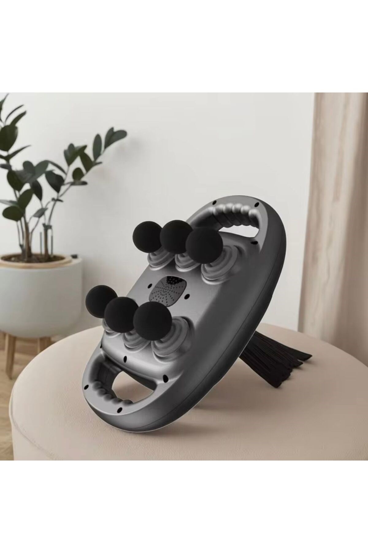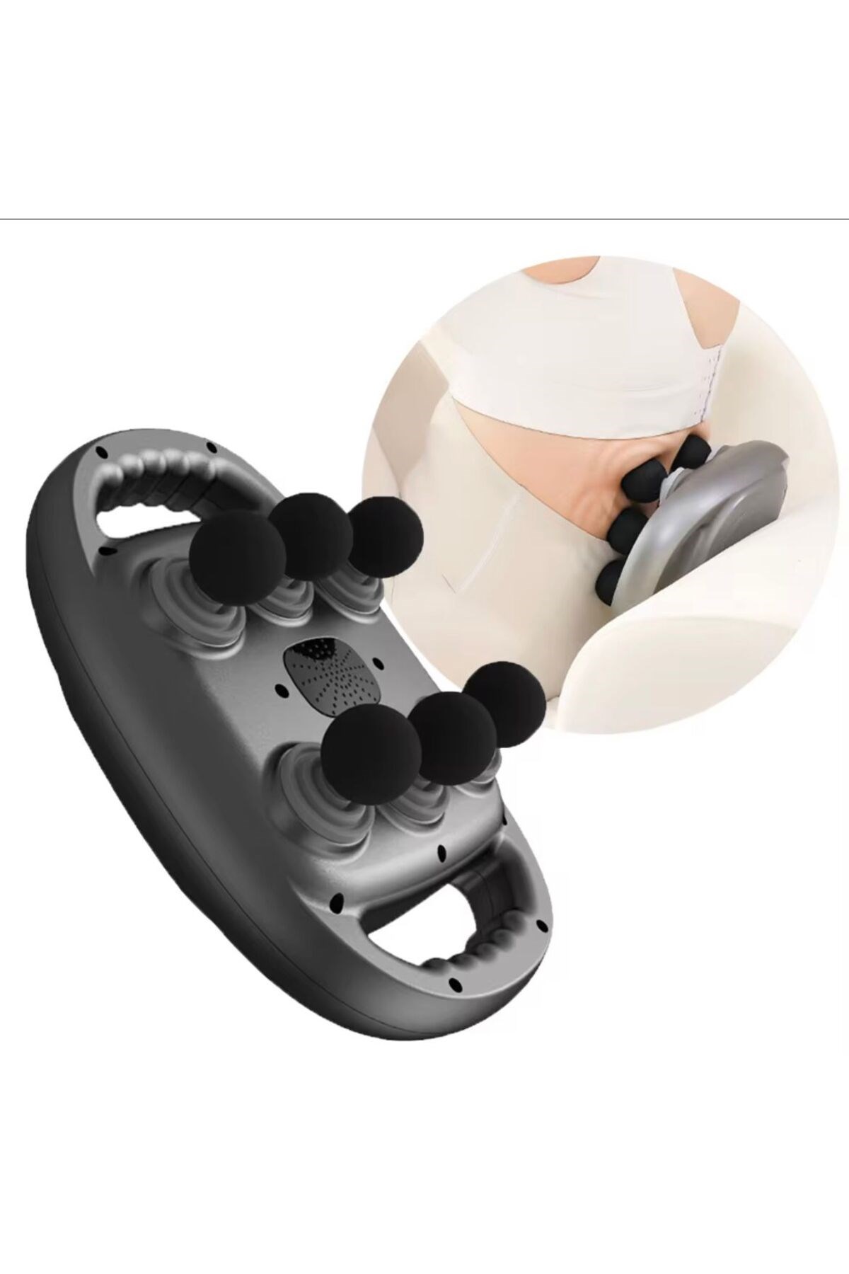 "Full body massage, relax at any time" (Tam vücut masajı, her zaman rahatla) sloganıyla tanıtılan bir masaj aletidir.; Ürün, vücudun çeşitli bölgelerinde kullanılabilen portatif bir tasarıma sahiptir.; ; Ürünün kullanılabildiği bölgeler ve masaj faydaları şu şekilde belirtilmiştir: ; * Masaj bel (waist): Bel bölgesindeki kasları gevşetmeye ve rahatlatmaya yardımcı olur.; ; * Masaj boyun ve omuzlar (neck and shoulders): Boyun ve omuzlardaki gerginliği ve ağrıyı hafifletmek için tasarlanmıştır.; ; * Masaj kollar (arms): Kol kaslarının rahatlamasına ve kan dolaşımının artmasına destek olur.; ; * Masaj uyluklar (thighs): Uyluk bölgesindeki kasları gevşetir ve yorgunluğu azaltır.; ; * Masaj baldırlar (calves): Baldırlardaki kas sertliğini ve ağrıyı gidermeye yardımcı olur.; ; * Masaj kalçalar (buttocks): Kalça bölgesindeki kasların rahatlamasına ve gerginliğin azalmasına katkı sağlar.; ; Ürün, evde veya seyahatlerde kolayca kullanılabilecek pratik bir cihaz gibi görünmektedir.; Amacı, kullanıcılara istedikleri zaman ve yerde rahatlama ve kas gevşetme sağlamaktır.